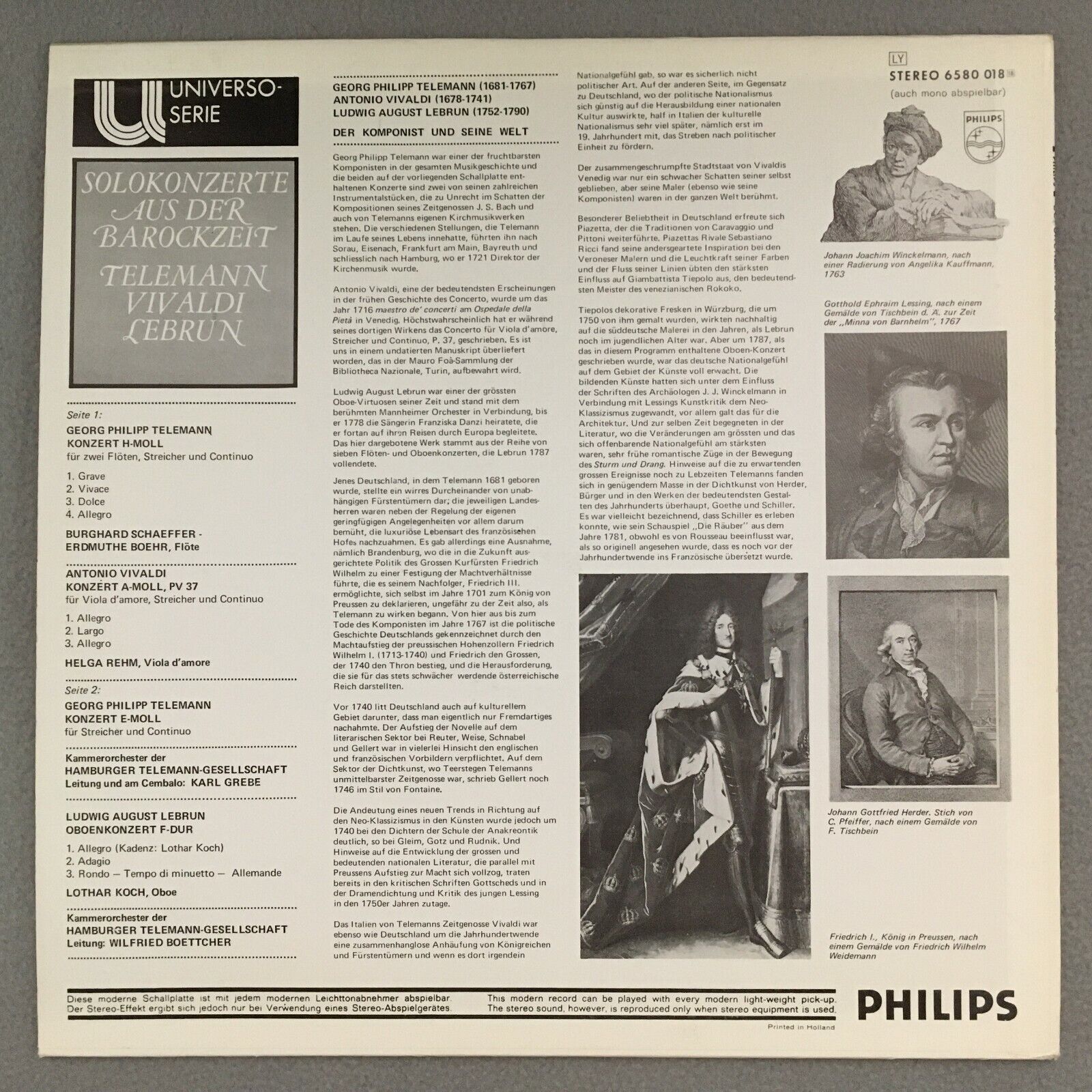 R930 Concertos Telemann Vivaldi Koch Boettcher Grebe Philips 6580 018 Stereo