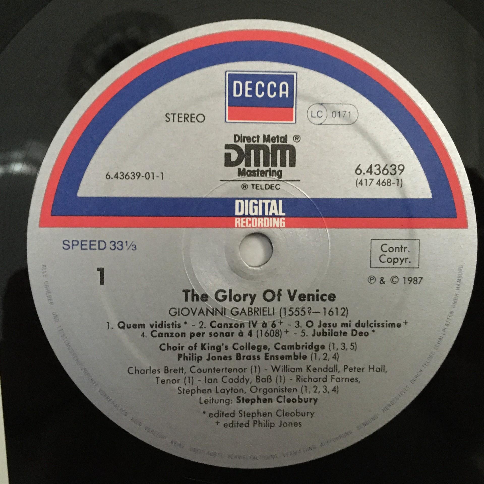 O474 The Glory of Venice Gabrieli Cleobury DECCA 6.43639 AZ Digital Stereo