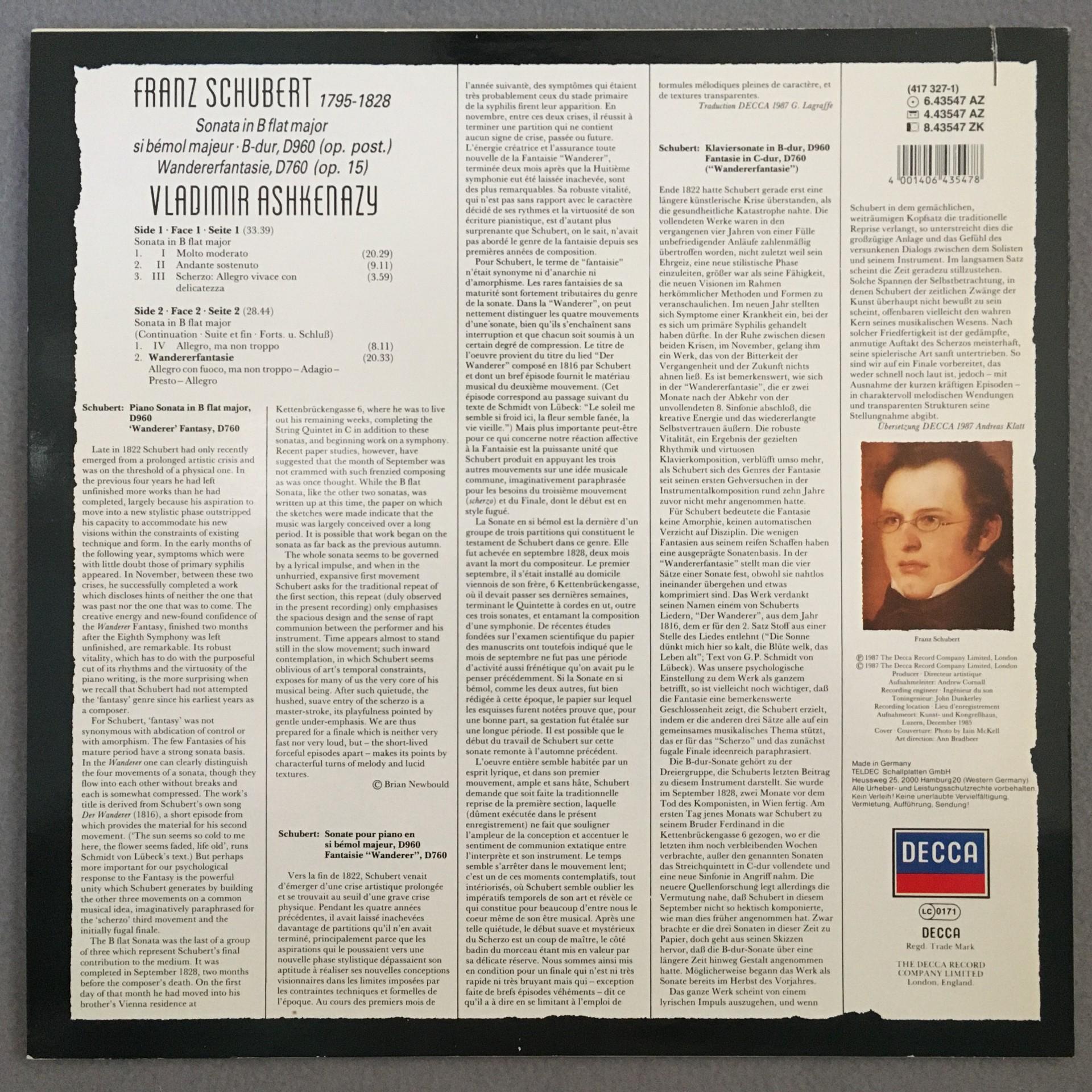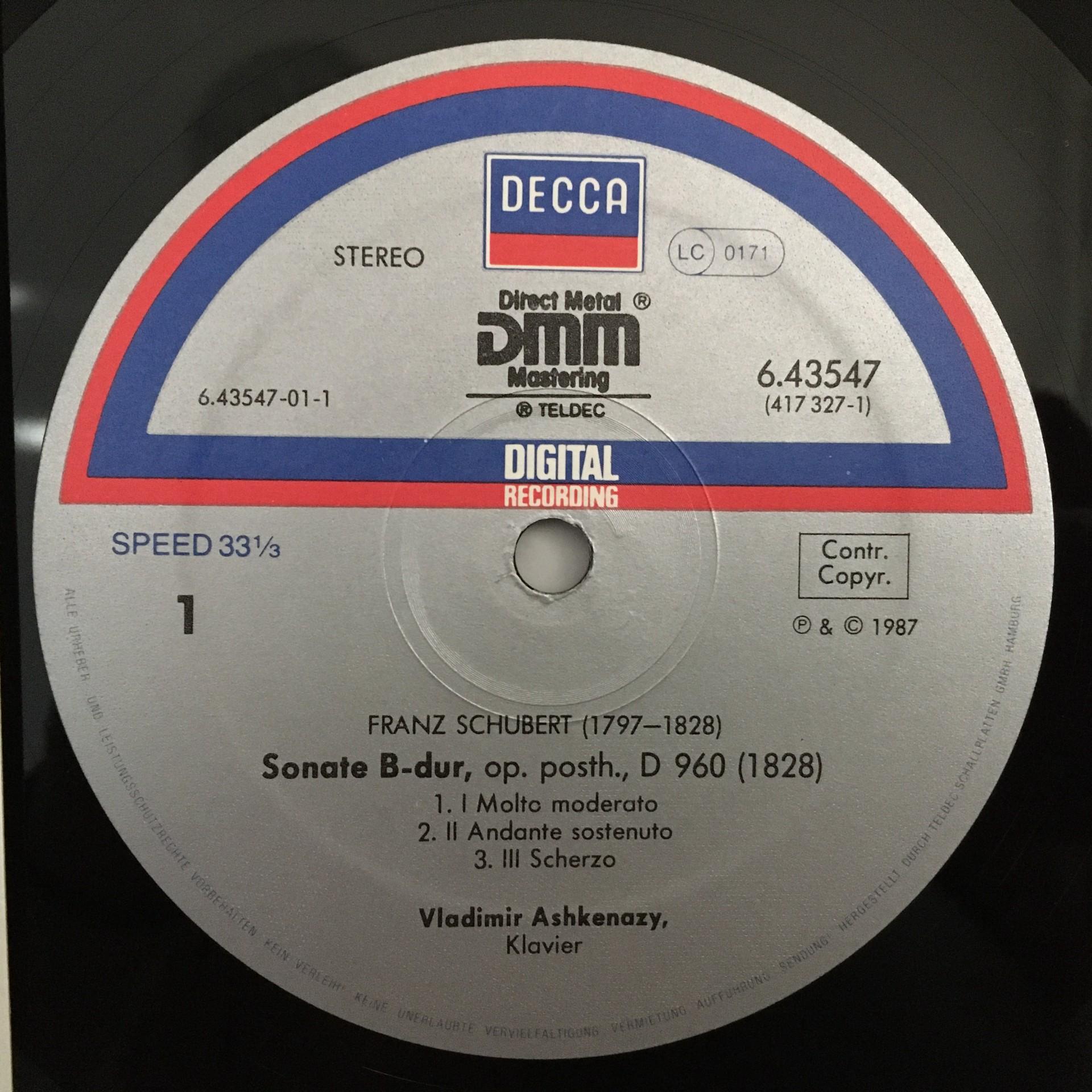 O478 Schubert Sonata Fantasy Ashkenazy DECCA 6.43547 AZ Digital Stereo