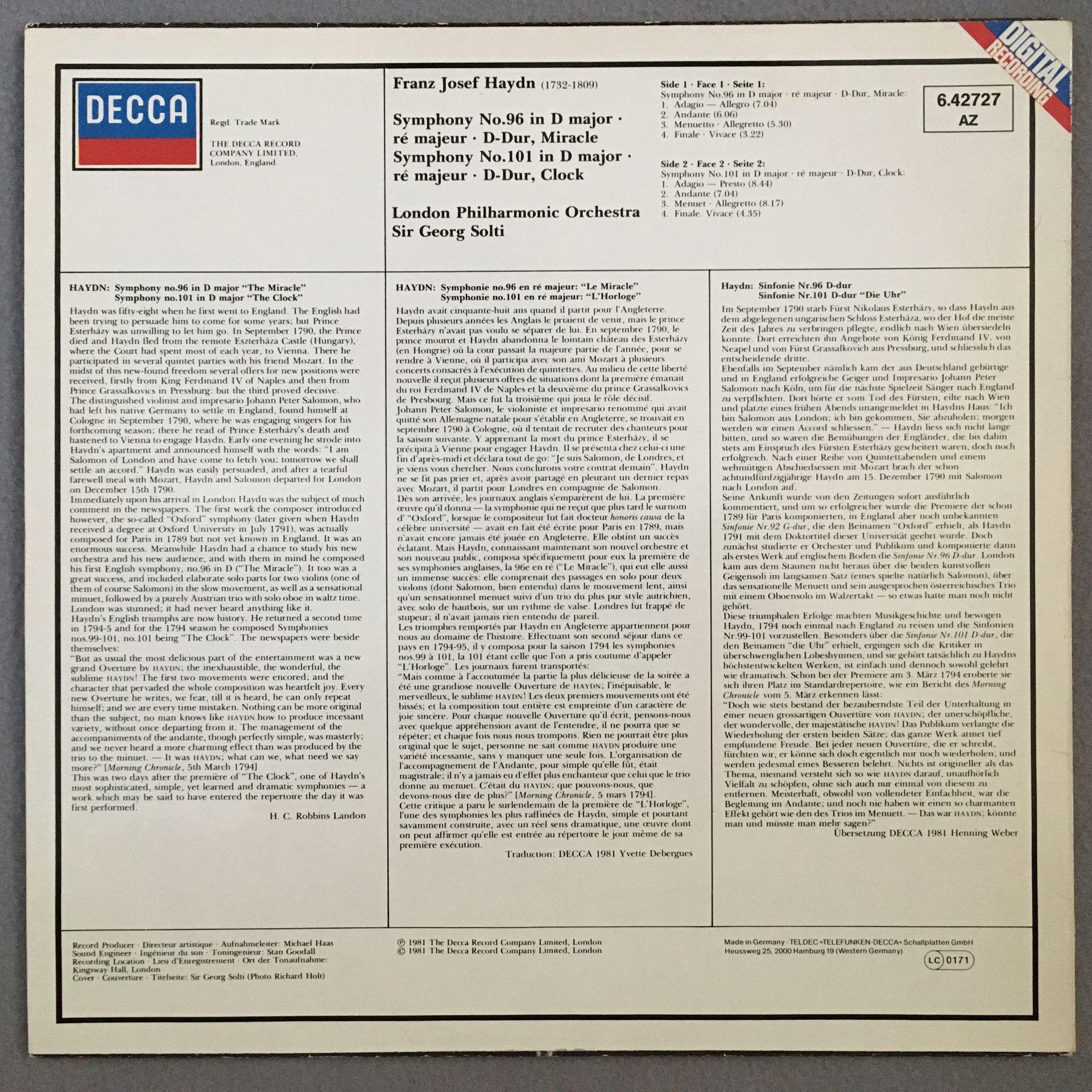 O481 Haydn Symphonies No.96 & No.101 Solti LPO DECCA 6.42727 AZ Digital