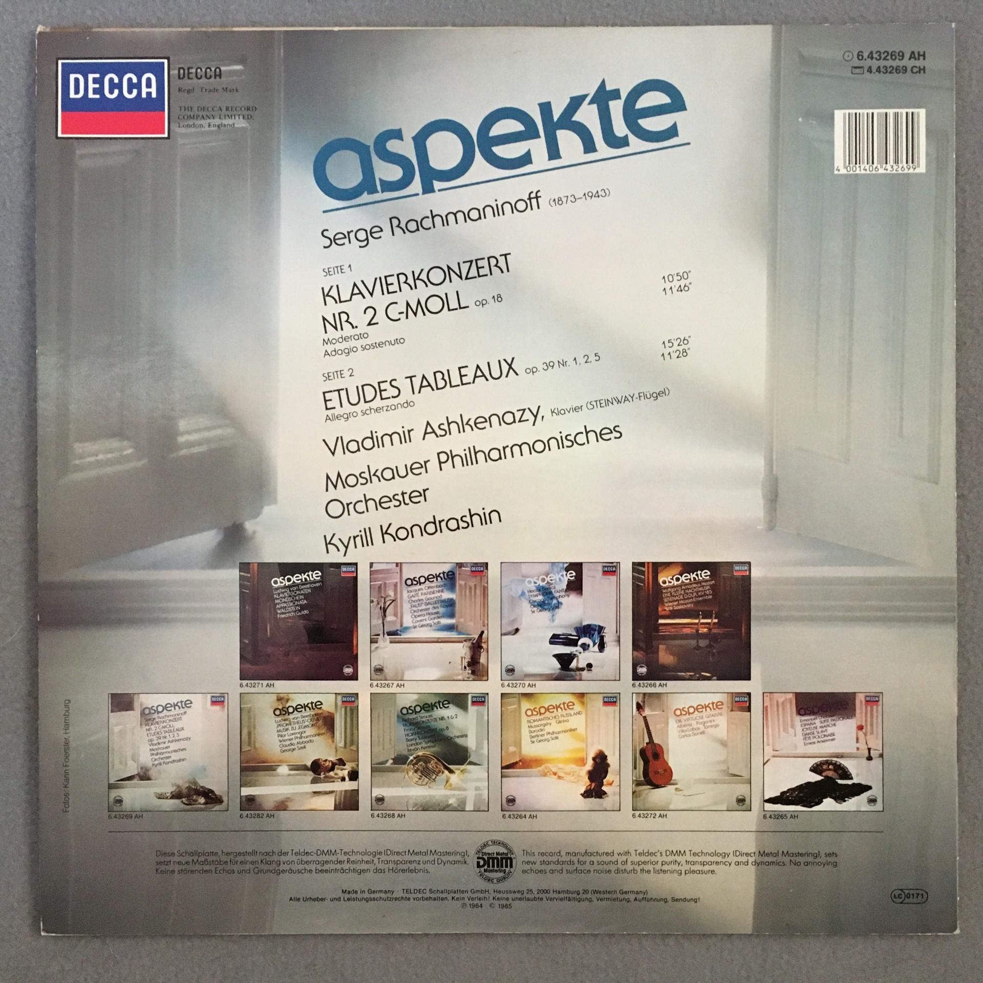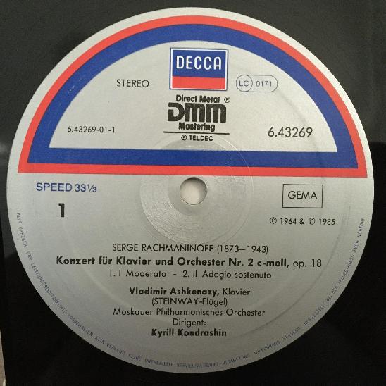 O491 Rachmaninov Piano Concerto Ashkenazy Kondrashin DECCA 6.43269 AH Digital