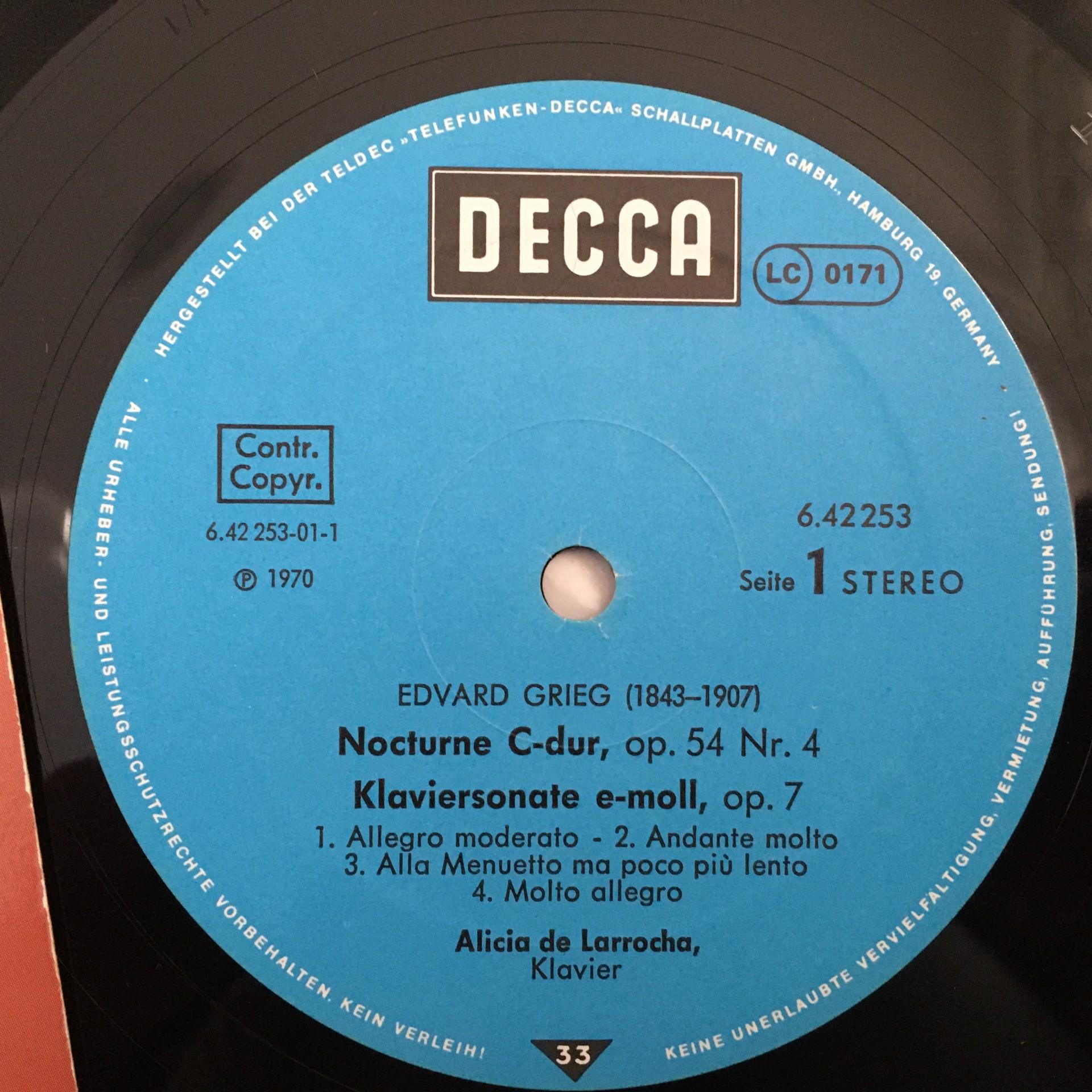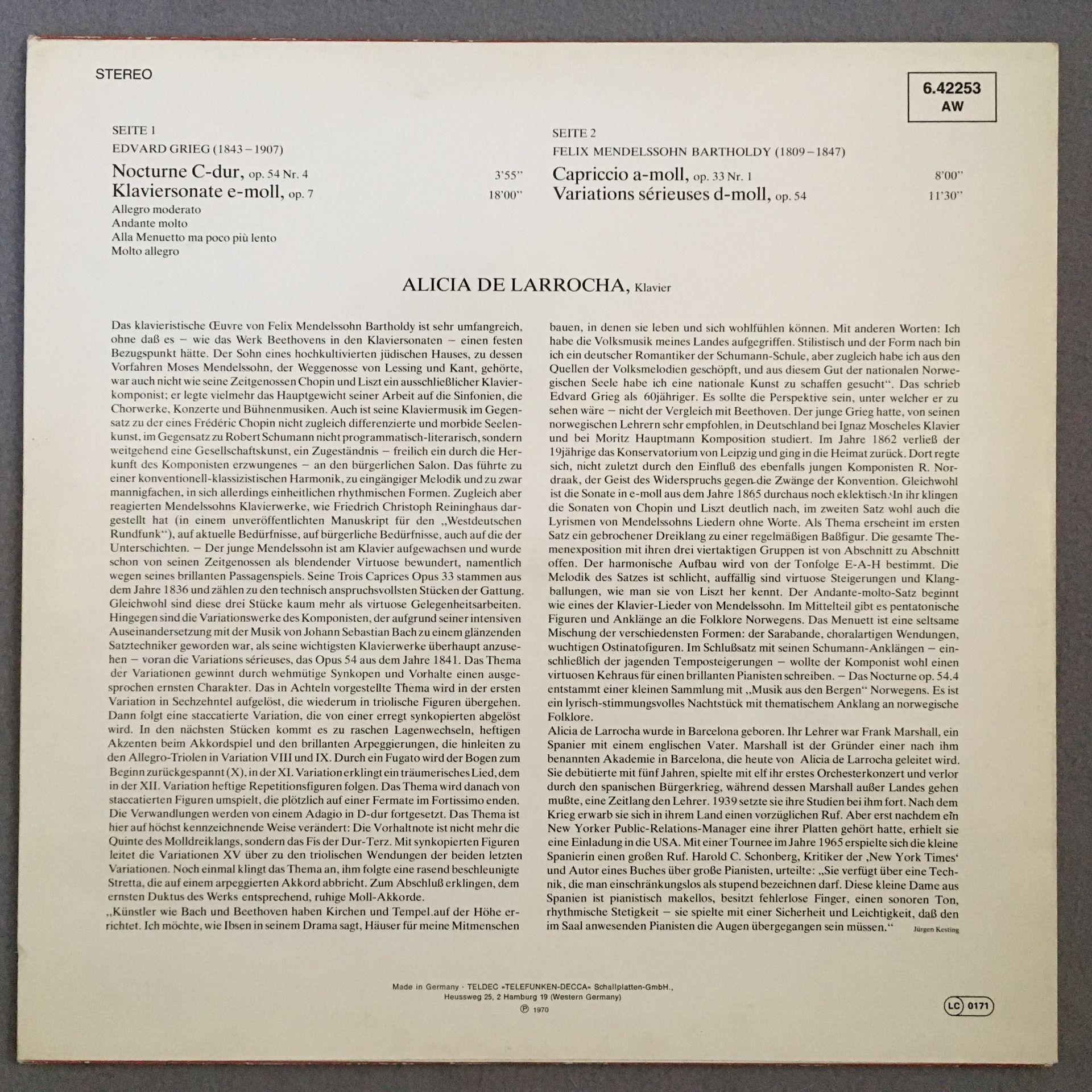 O493 Grieg Sonata Mendelssohn Variations Larrocha Piano DECCA 6.42253 AW Stereo