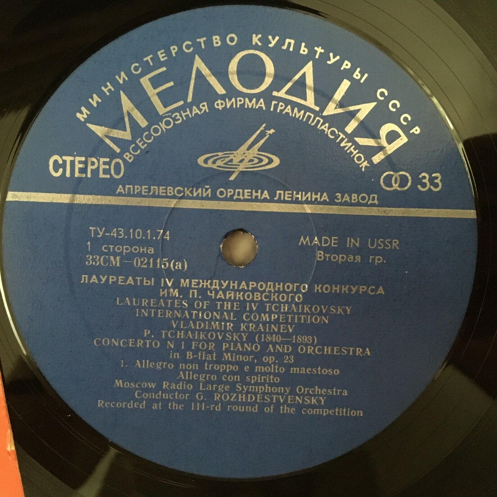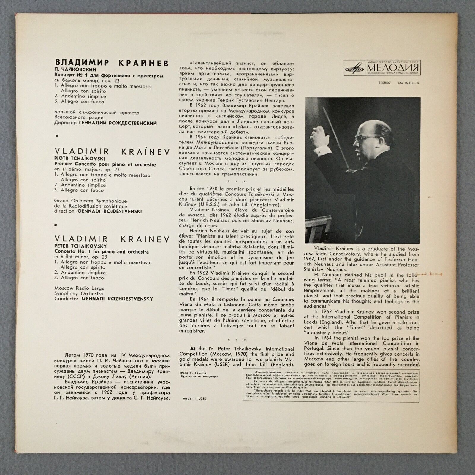 R923 Tchaikovsky Piano Concerto Krainer Rozhdestvensky Melodiya CM 02115-16 St