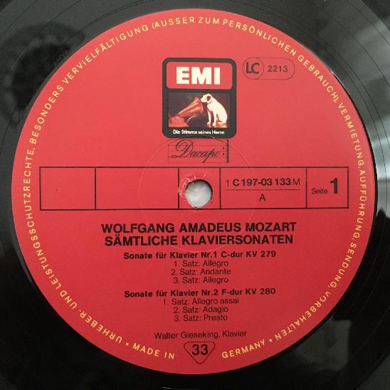 D741 Mozart Complete Piano Sonatas Gieseking 5LP EMI 1C 197-03 133/37 M