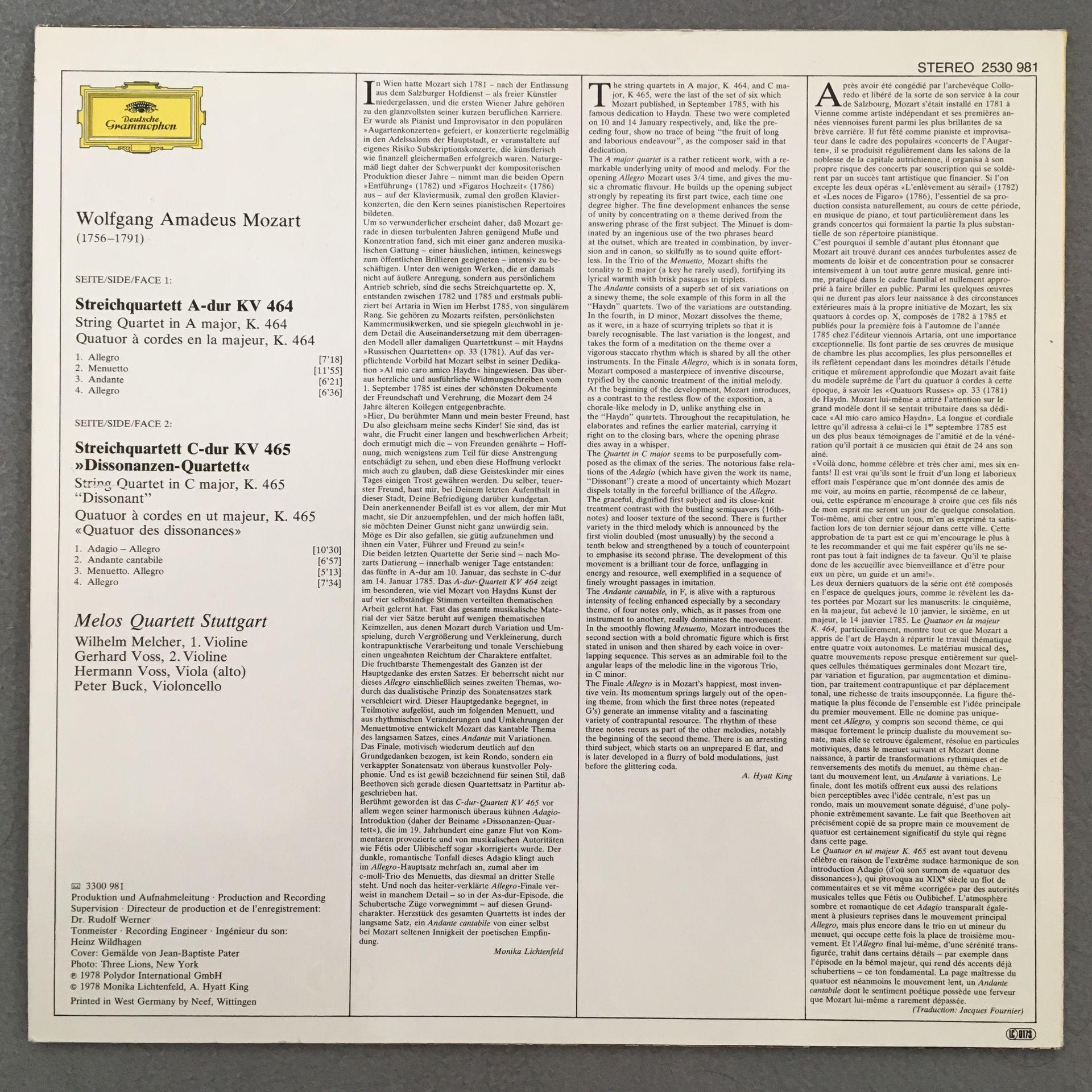 O510 Mozart String Quartets Melos Quartet Stuttgart DGG 2530 981 Stereo