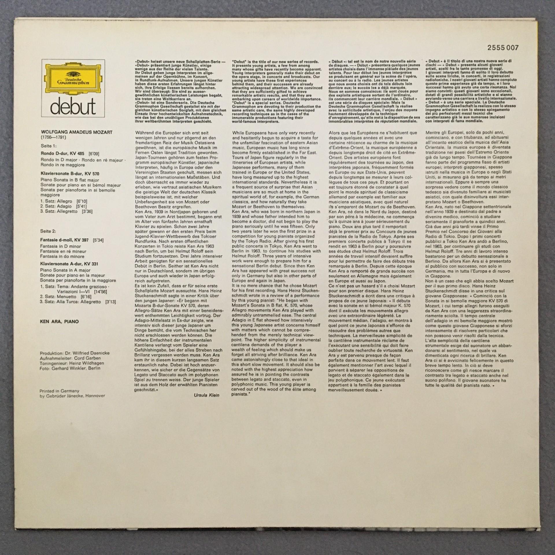 O516 Mozart Rondo Piano Sonatas Fantasy Ara DGG 2555 007 Stereo