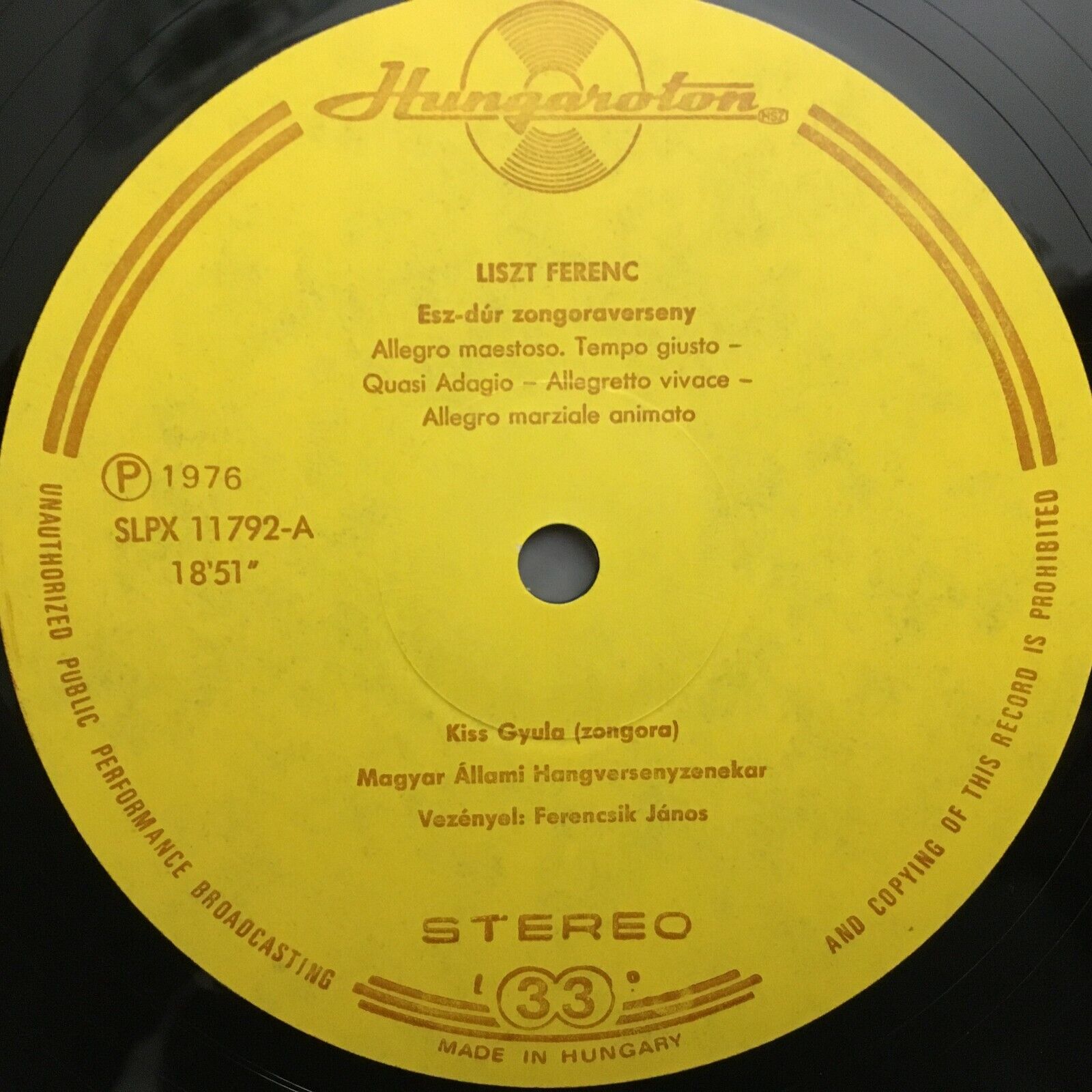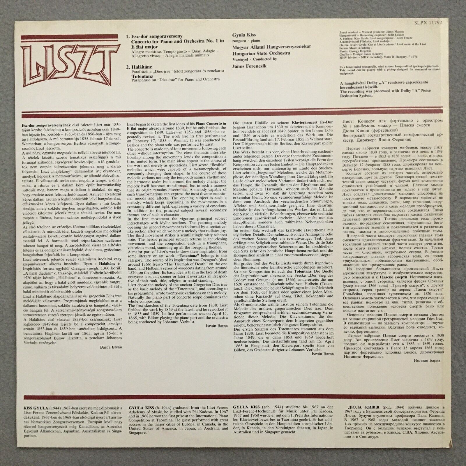 S125 Liszt Piano Concerto Totentanz Kiss Ferencsik Hungaroton SLPX 11 792 Stereo