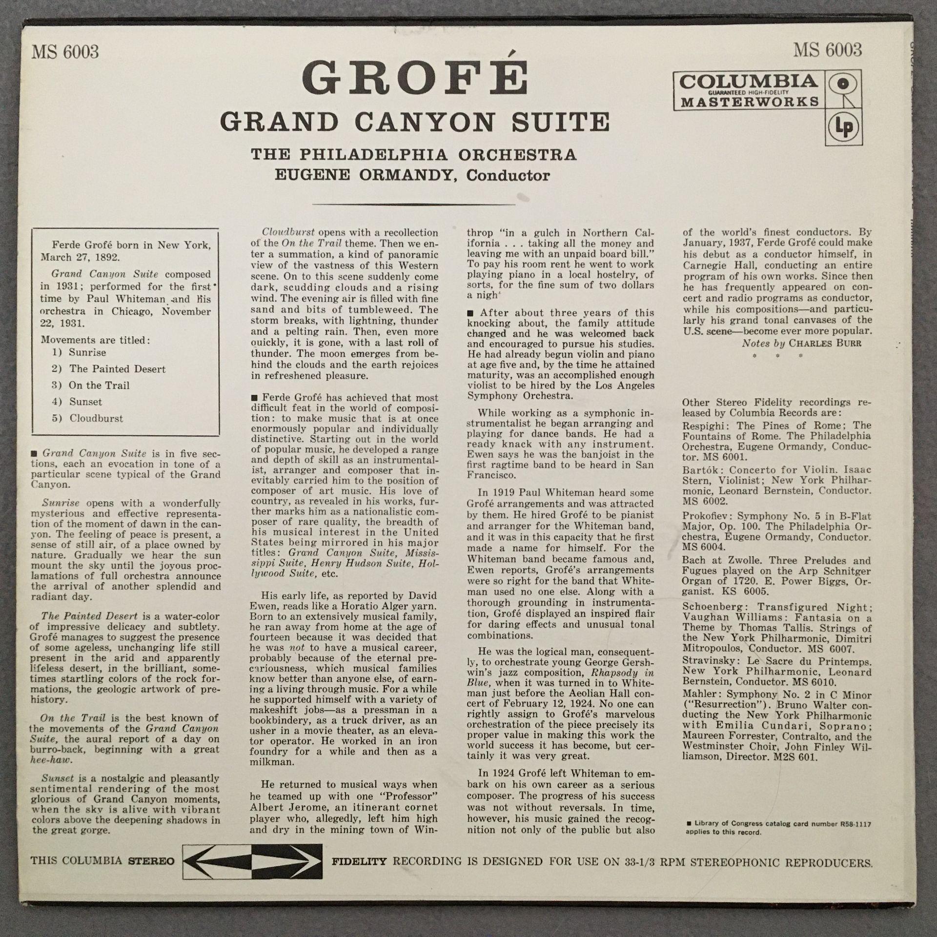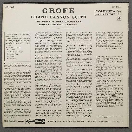O530 Grofe Grand Canyon Suite Ormandy Columbia 2-Eye MS 6003 Stereo