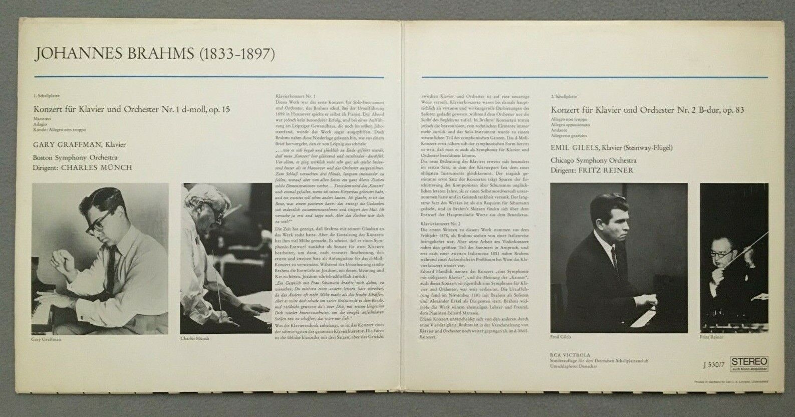 S285 Brahms Piano Concertos Gilels Reiner Munch 2LP RCA Victrola J 530/7 Stereo