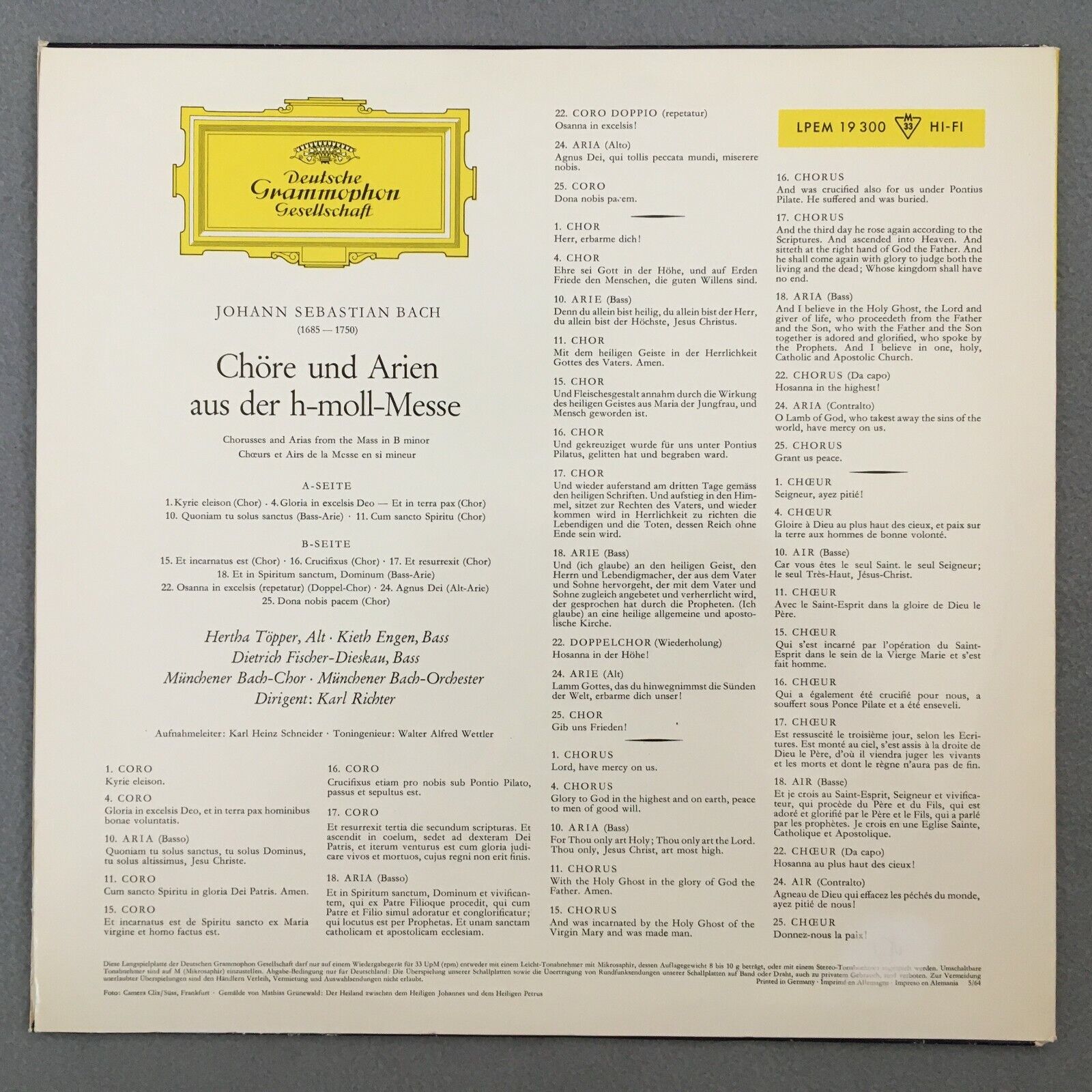 S663 Bach Excerpts from Mass Fischer-Dieskau Richter DGG LPEM 19 300 SEALED