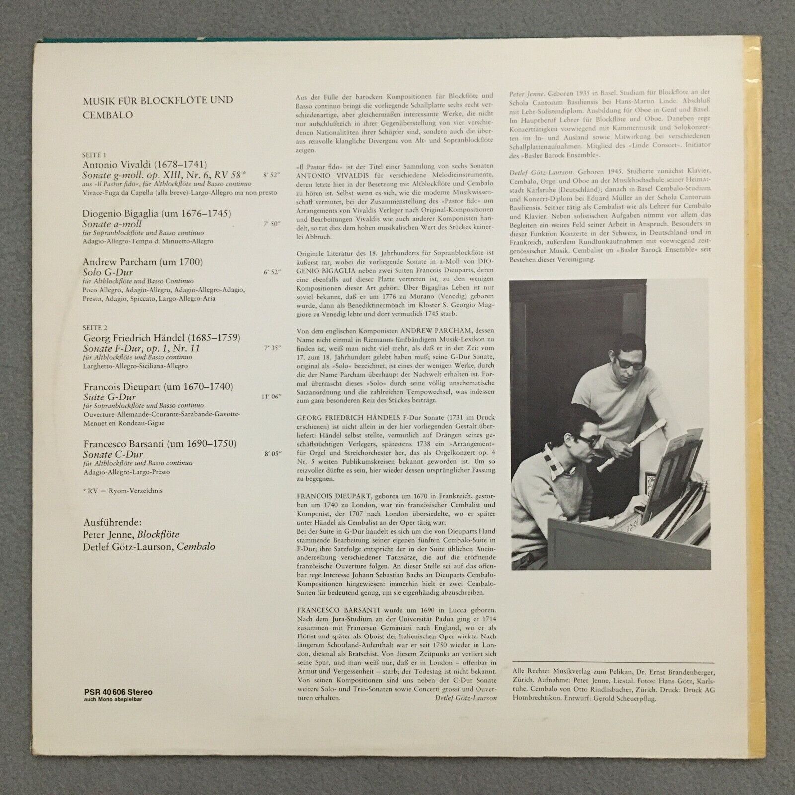 S597 Vivaldi Handel Sonatas Jenne Recorder Götz-Laurson Pelca PSR 40 606 Stereo