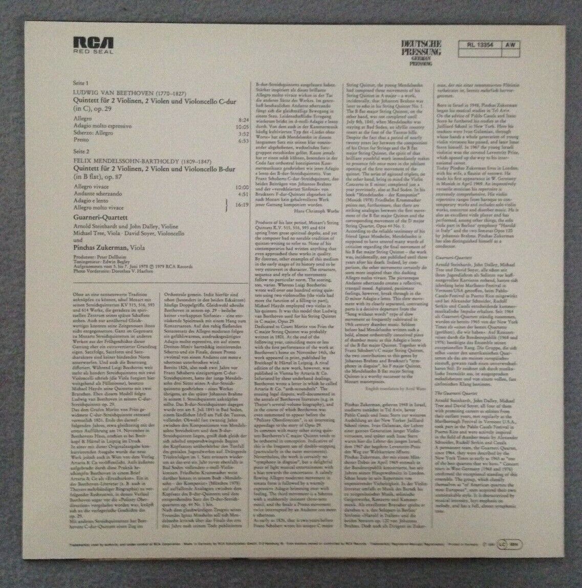 J062 Guarneri Quartet Beethoven Mendelssohn-Bartholdy RCA Red Seal RL 13354 AW S