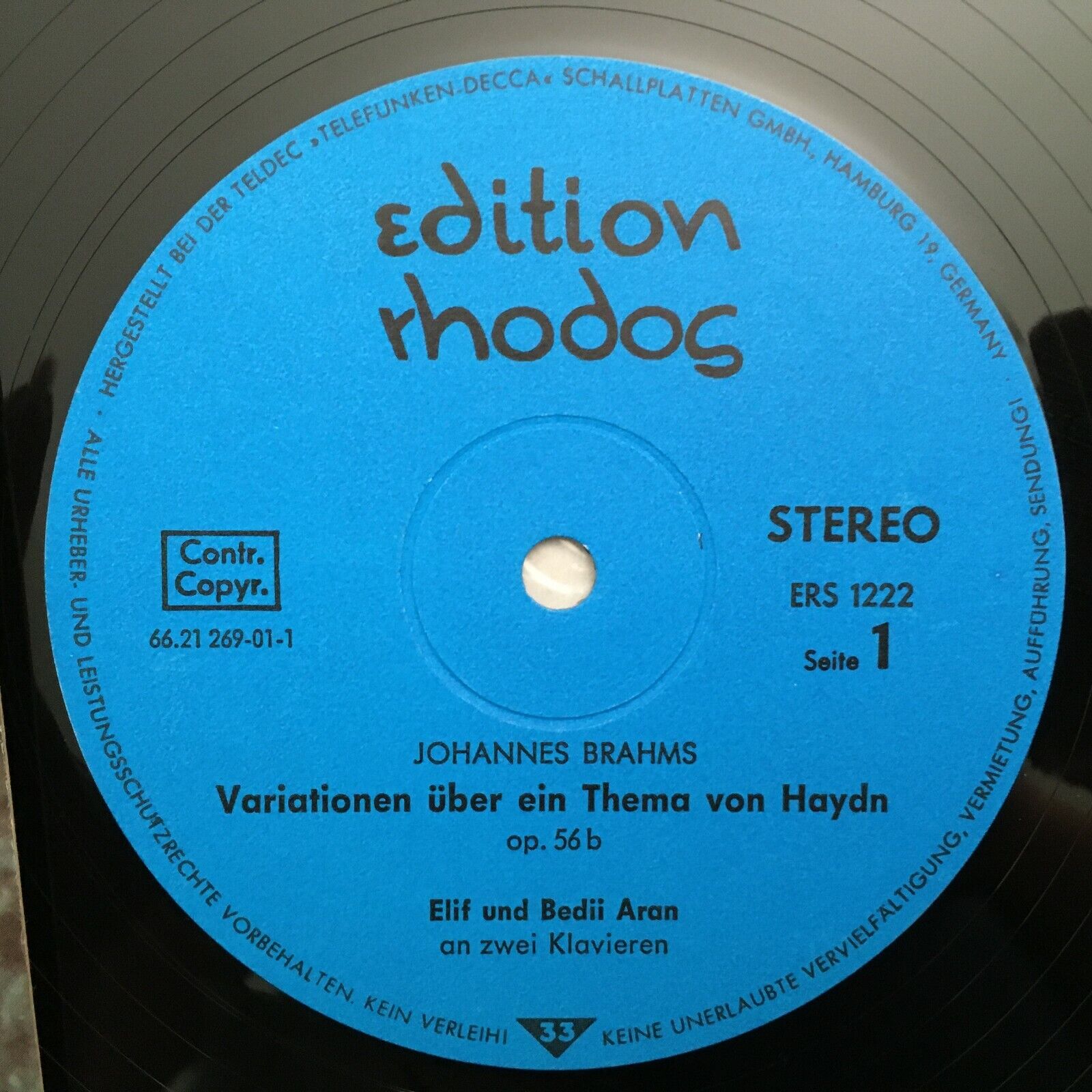 S605 Brahms Haydn Piano Variations E. & B. Aran Rhodos Edition ERS 1222 Stereo