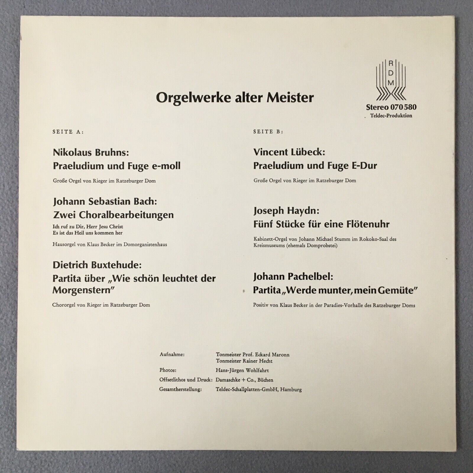 R958 Organ Works Bethke Bruhns Bach Buxtehude Haydn Teldec RDM 070 580 Stereo