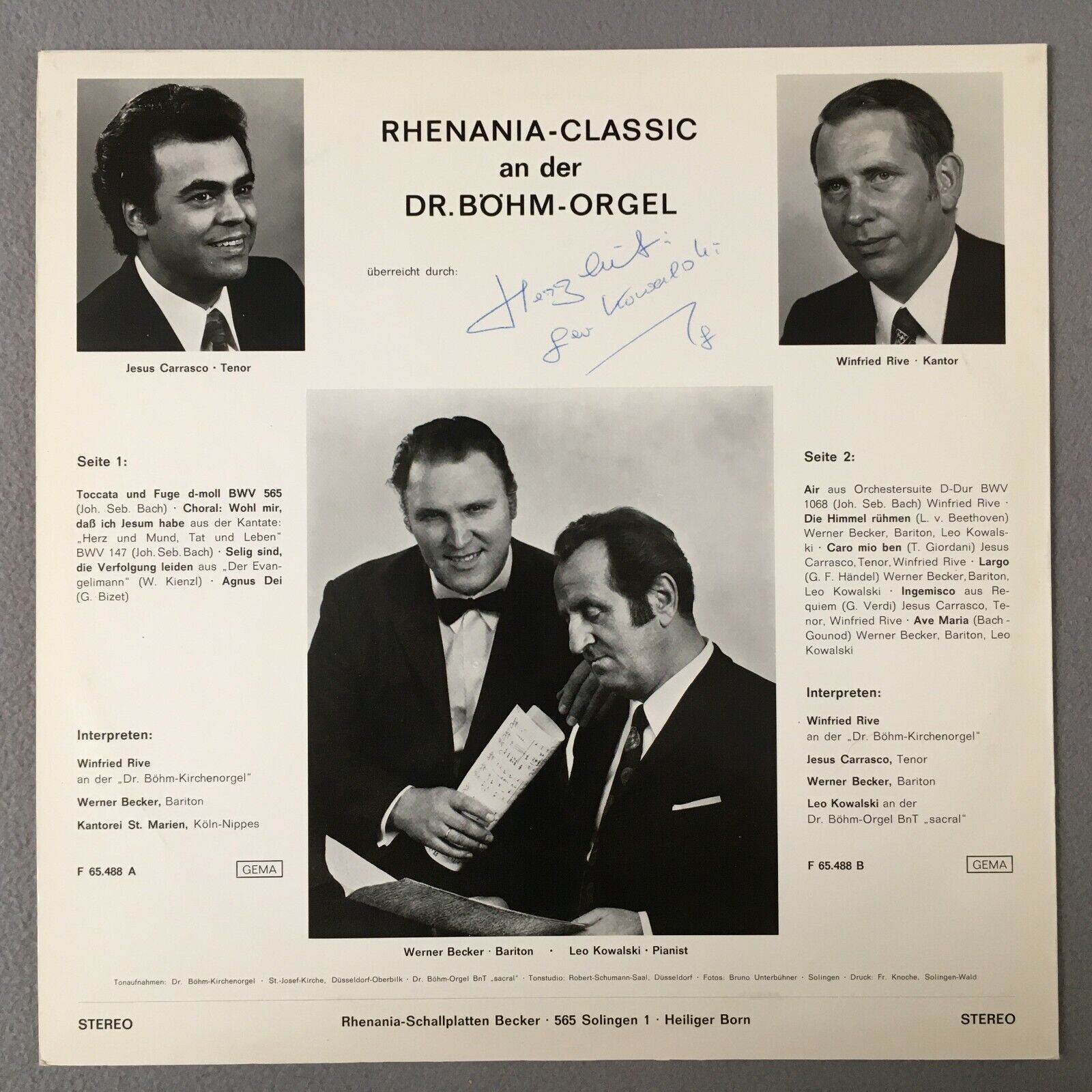 R959 Bach Gounod Ave Maria Agnus Dei Kowalski Rhenania F 65.488 B Stereo Signed