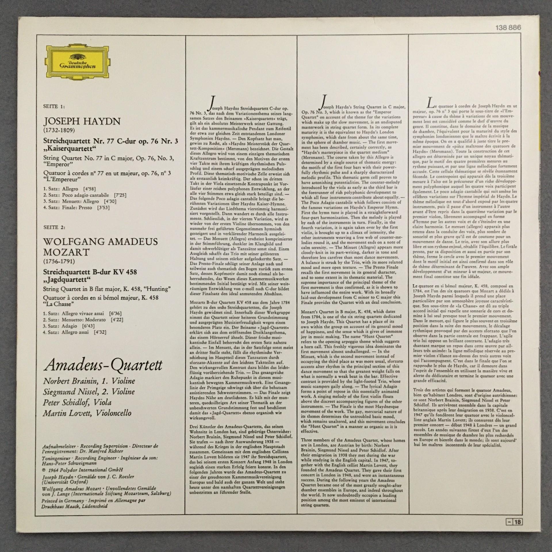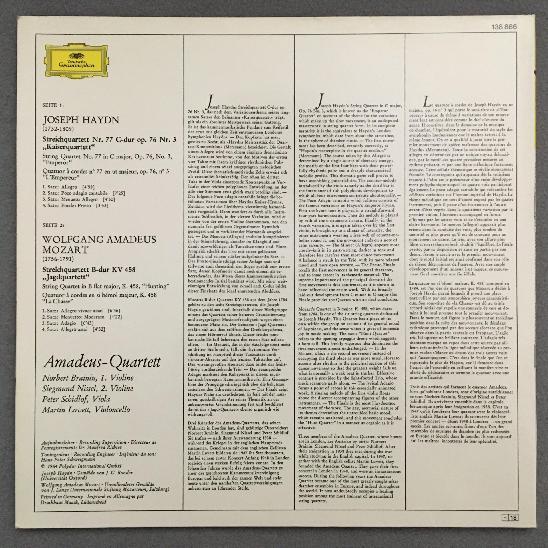 O541 Haydn Mozart String Quartets Amadeus Quartet DGG 138 886 Stereo