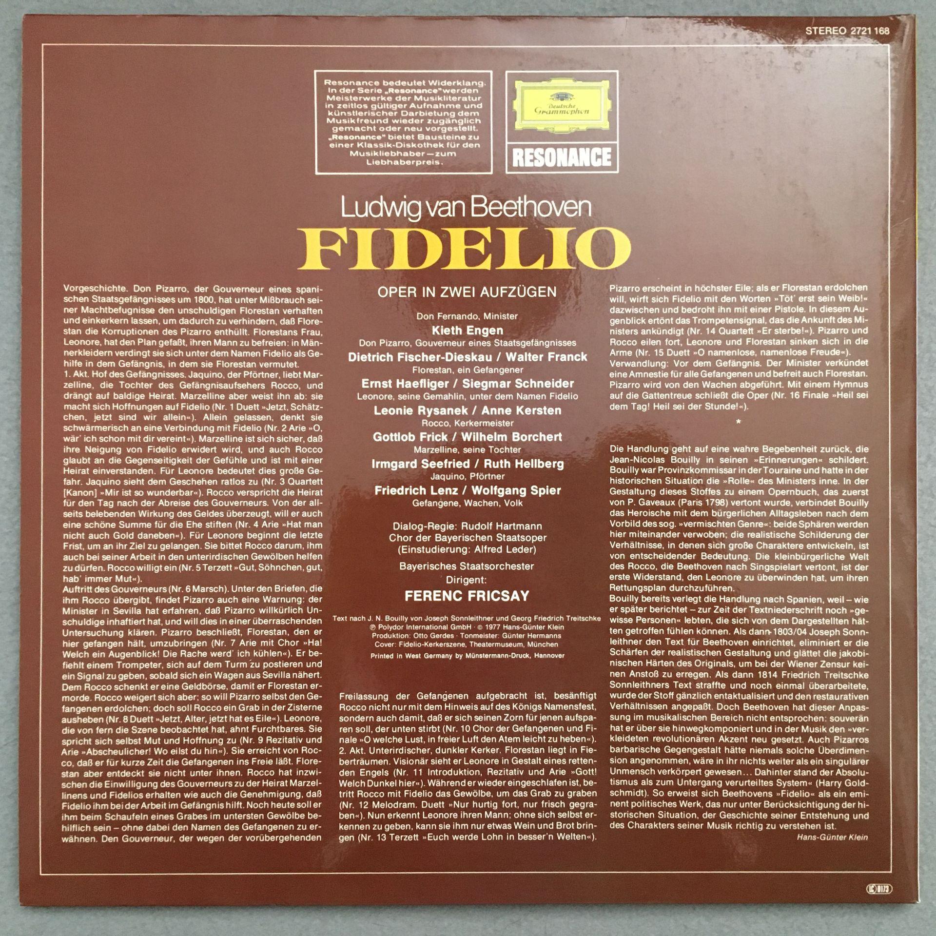 O544 Beethoven Fidelio Rysanek Fischer-Dieskau Fricsay 2LP DGG 2721 168 Stereo