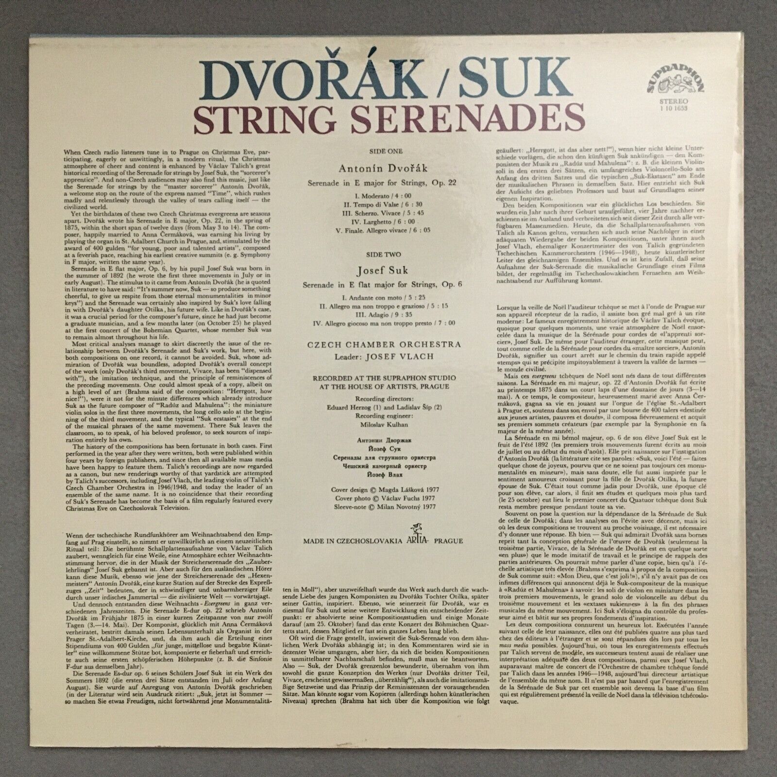 S679 Dvorak Suk String Serenades Vlach Supraphon 1 10 1653 Stereo