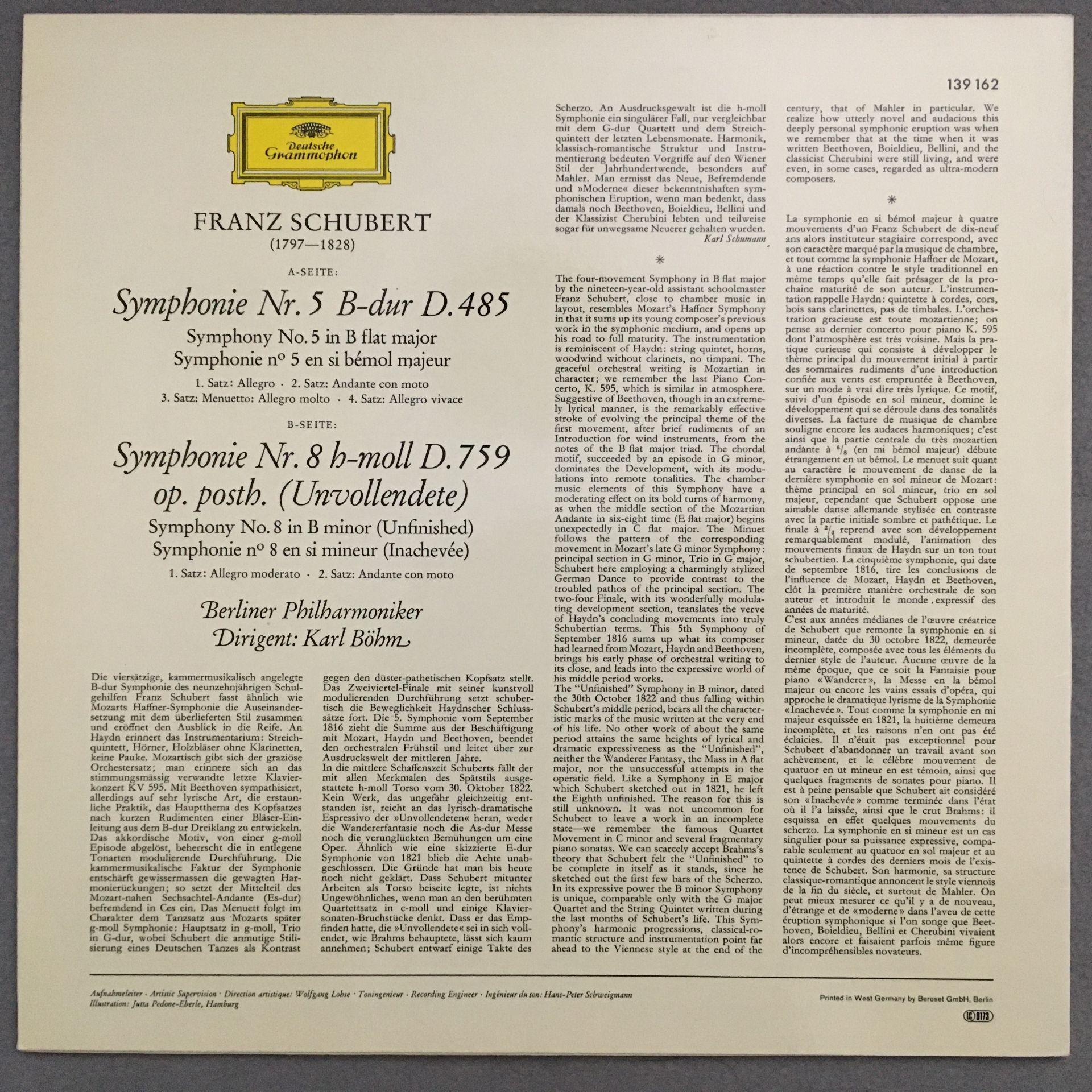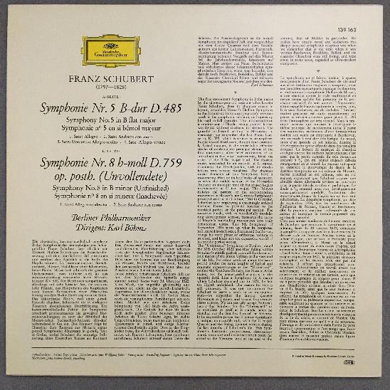 O549 Schubert Symphonies No.5 & No.8 Bohm BPO DGG 139 162 Stereo