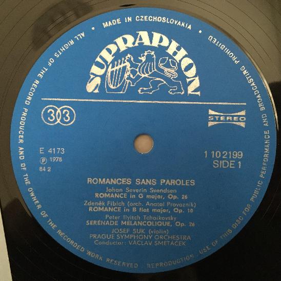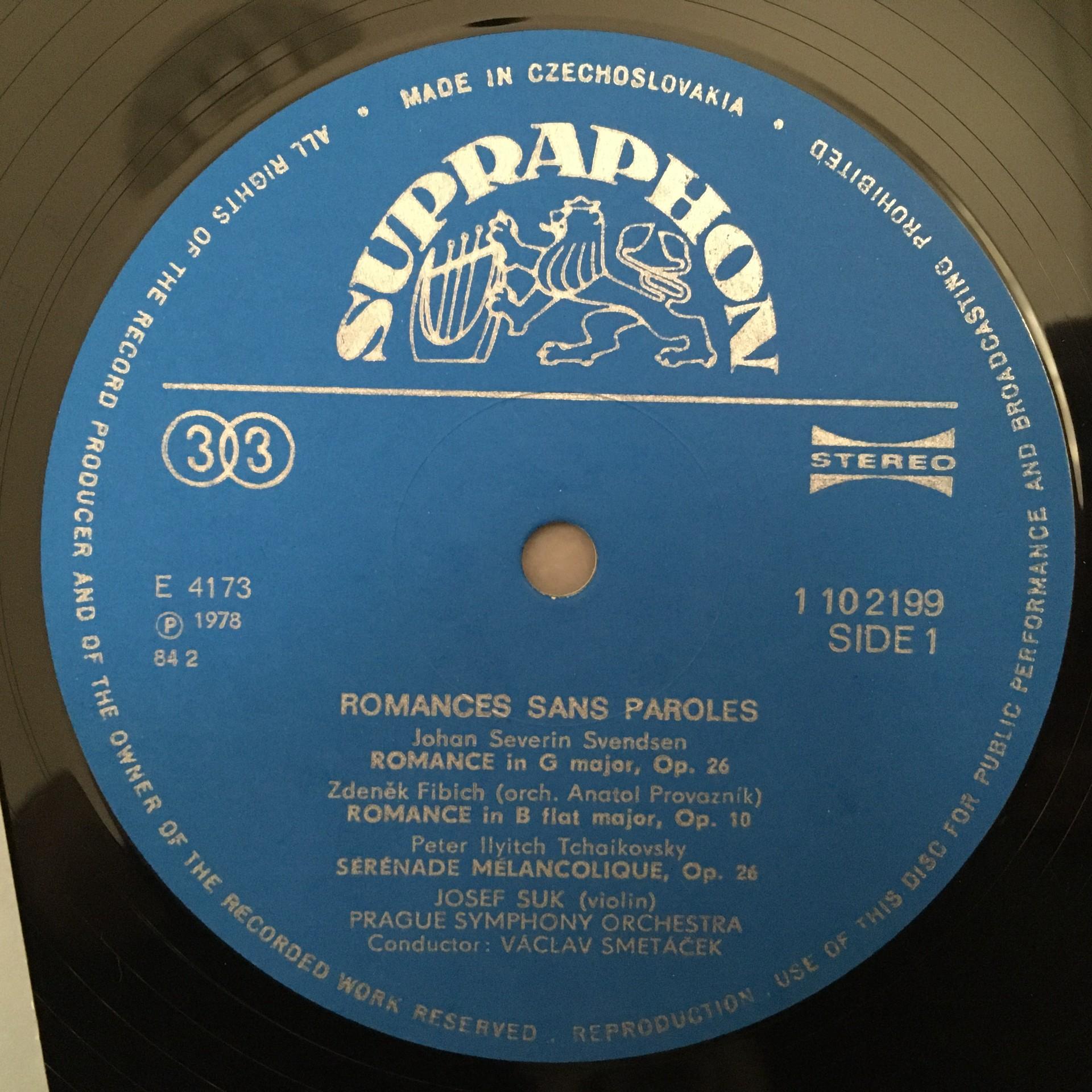 O563 Romances sans Paroles Suk Violin Smetacek Supraphon 1110 2199 G Stereo