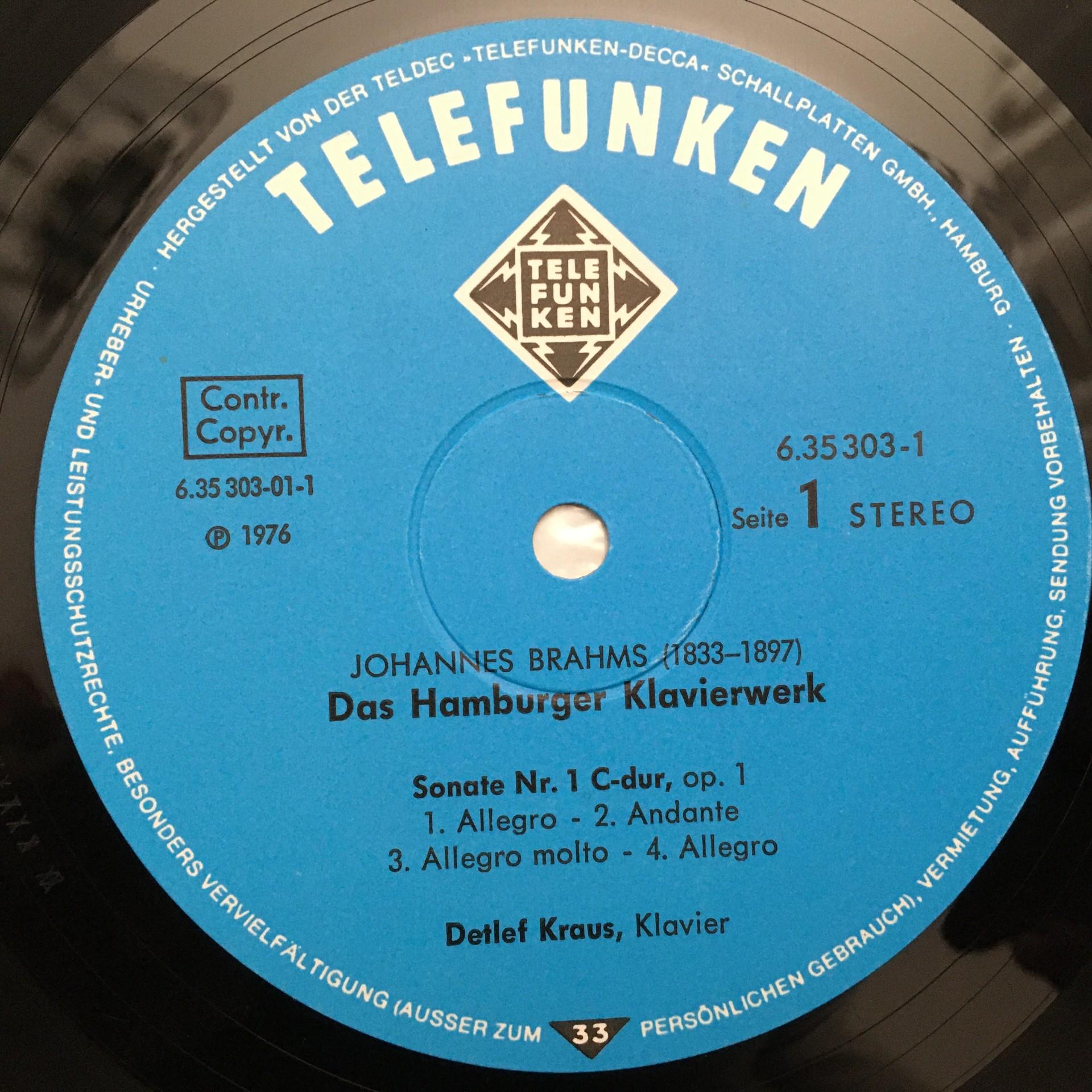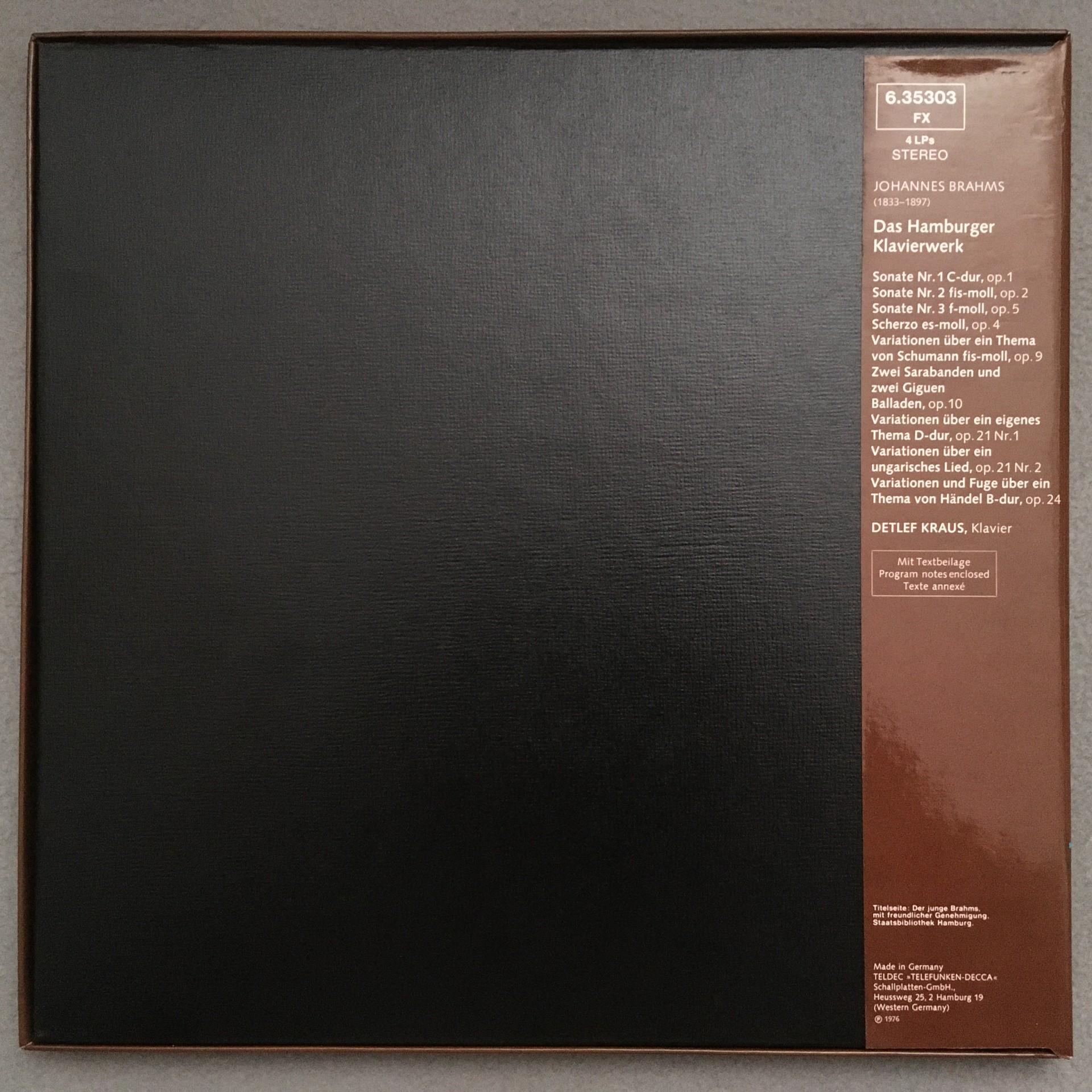 D746 Brahms Hamburg Piano Works Kraus 4LP Telefunken 6.35303 FX Stereo