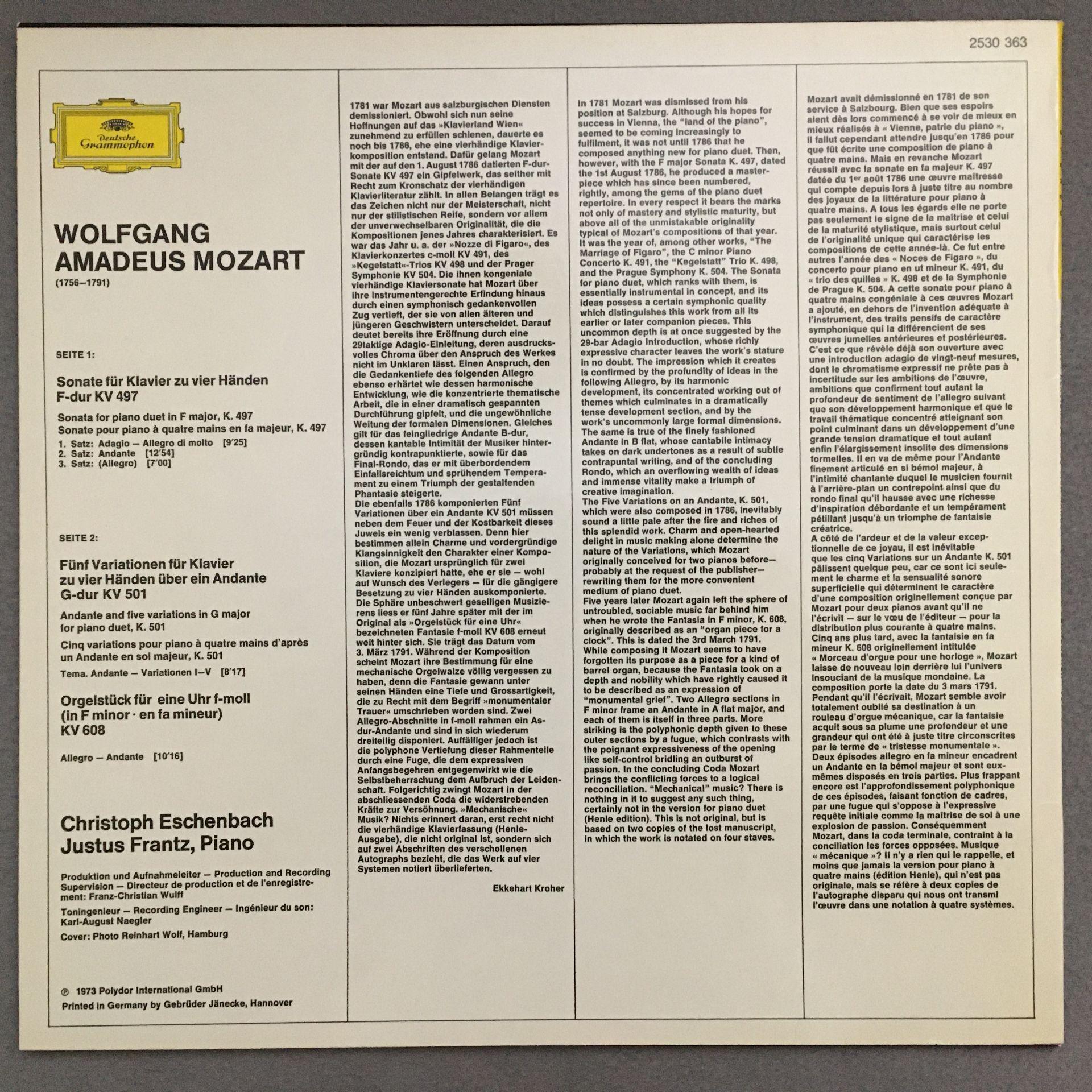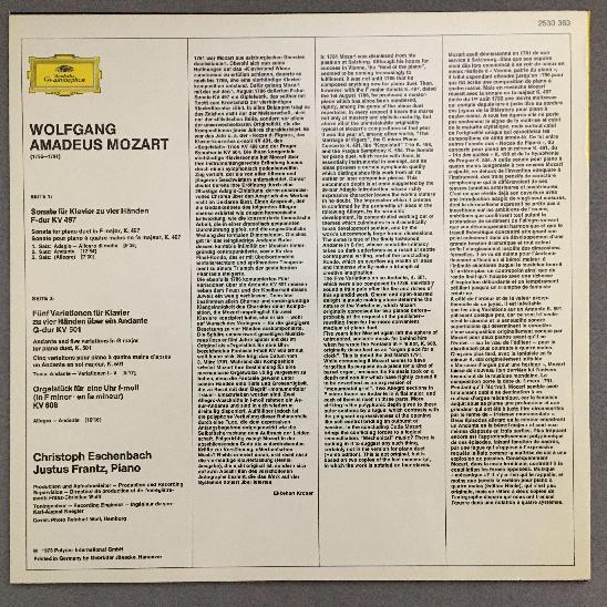 O571 Mozart Four Hands Piano Music Eschenbach Frantz DGG 2530 363 Stereo