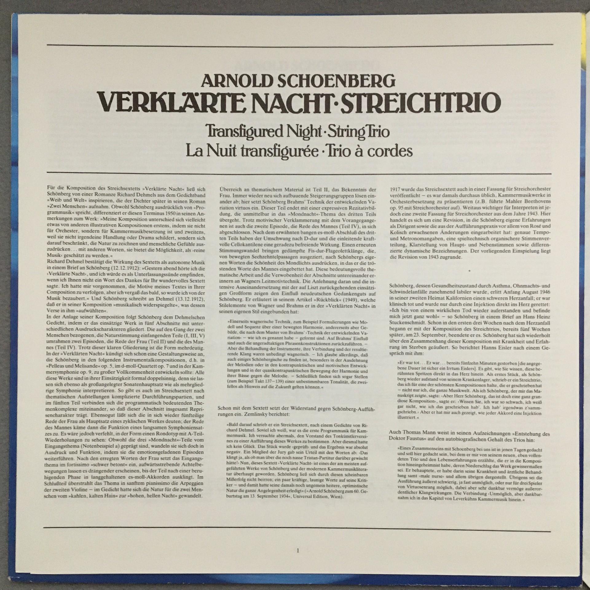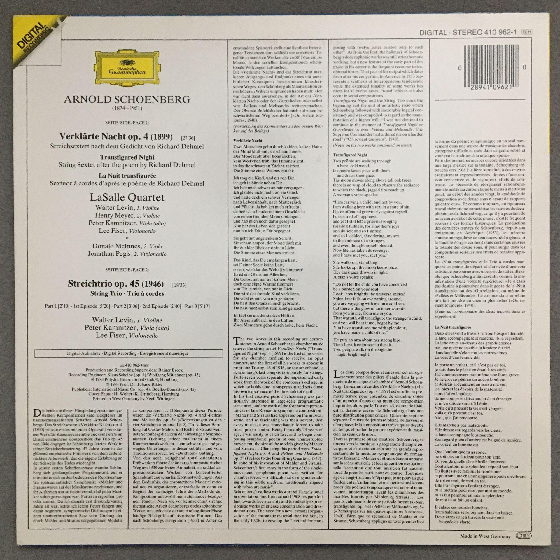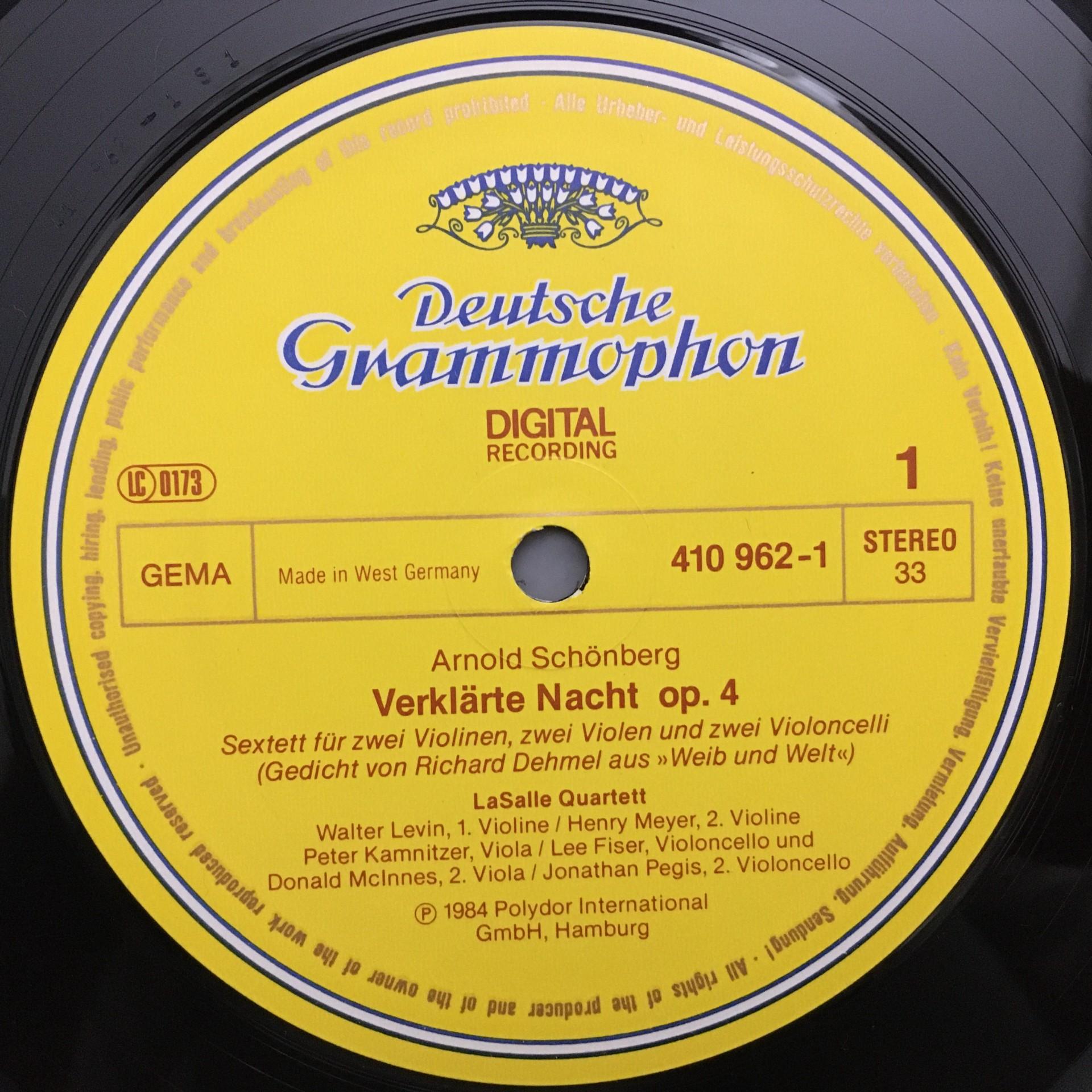 O578 Schönberg Verklärte Nacht LaSalle Quartet DGG 410 962-1 Digital Stereo