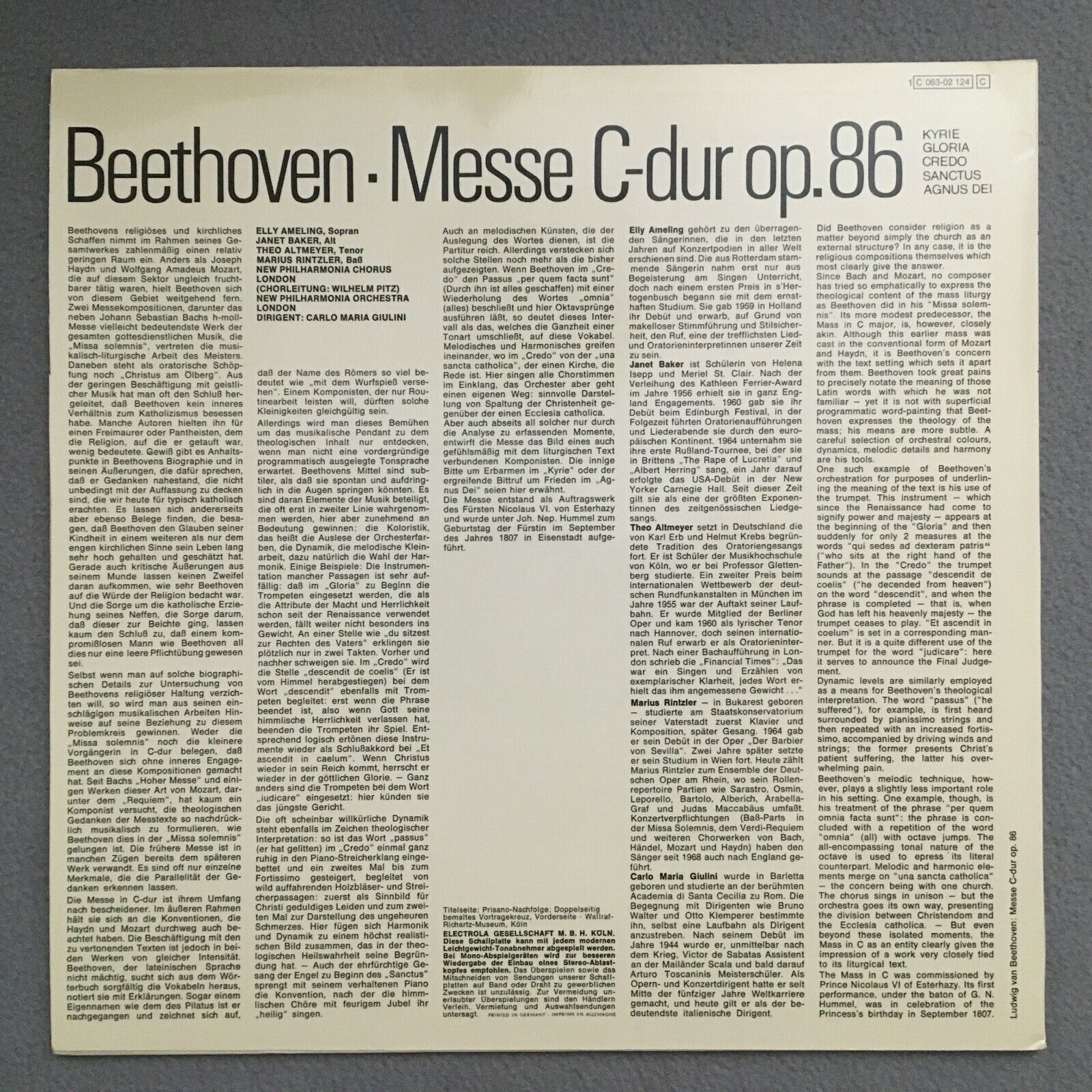 S514 Beethoven Mass Ameling Baker Altmeyer Giulini EMI 1C 063-02 124 Stereo