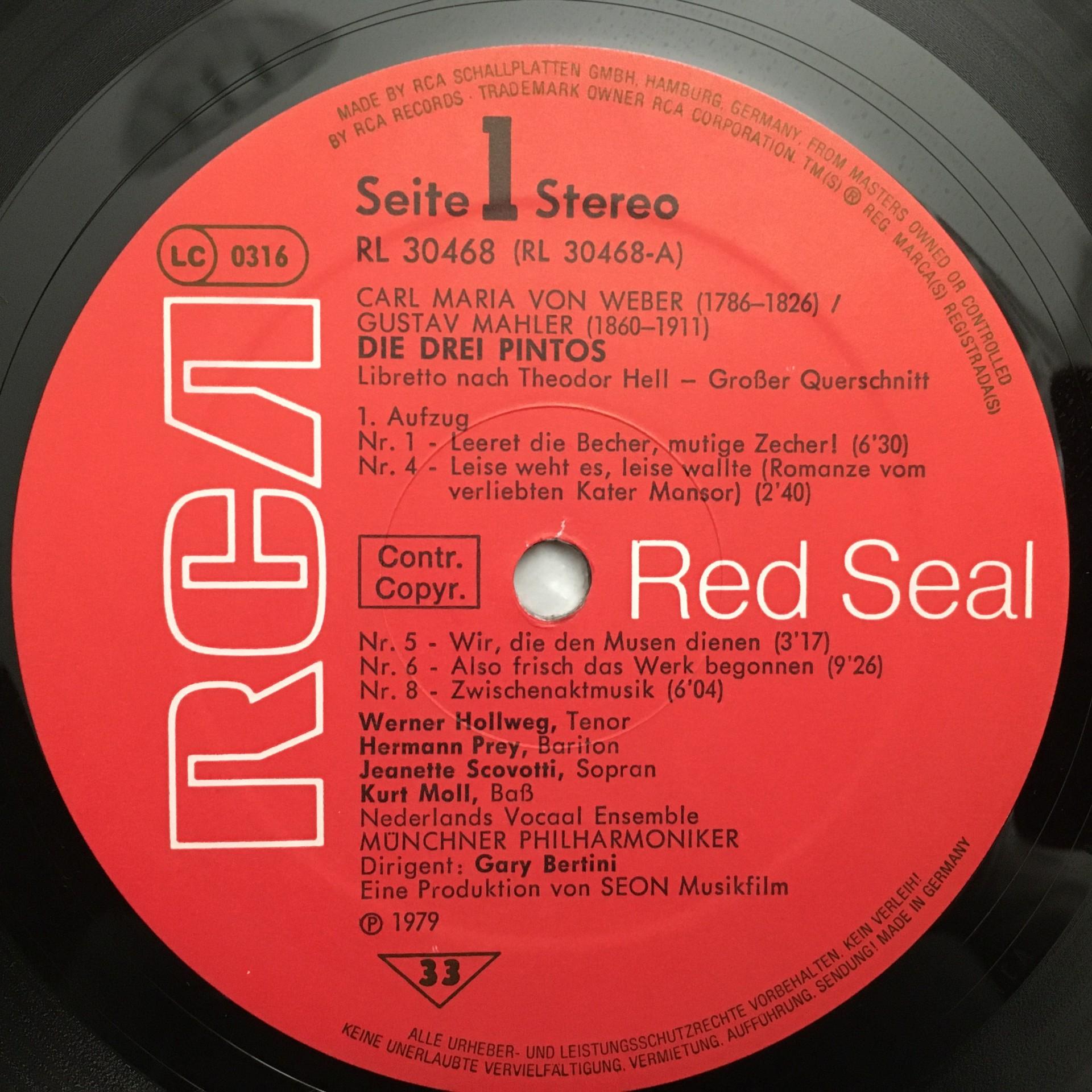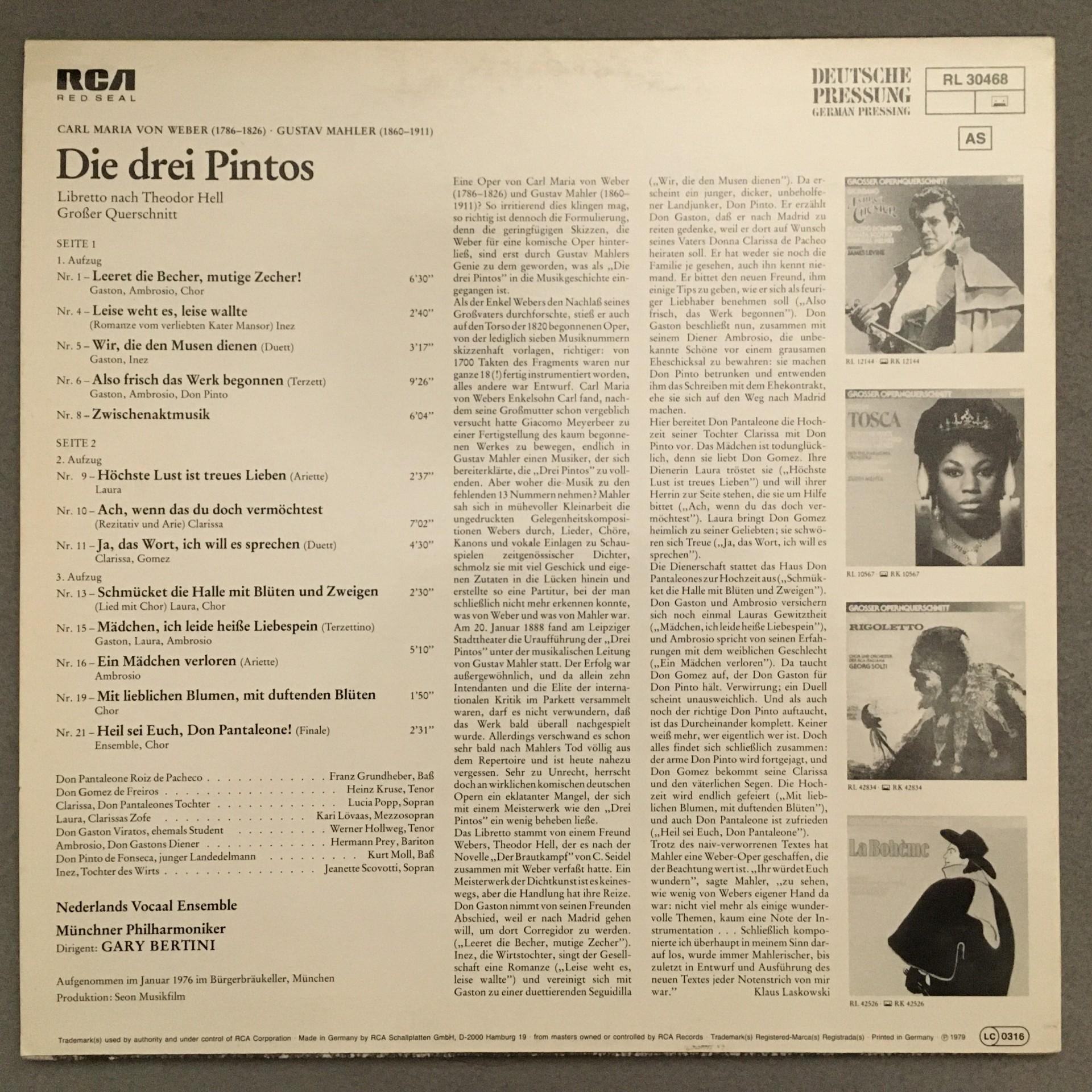 O585 Weber Mahler Die 3 Pintos Popp Hollweg Bertini RCA RL 30468 Stereo