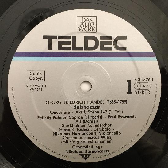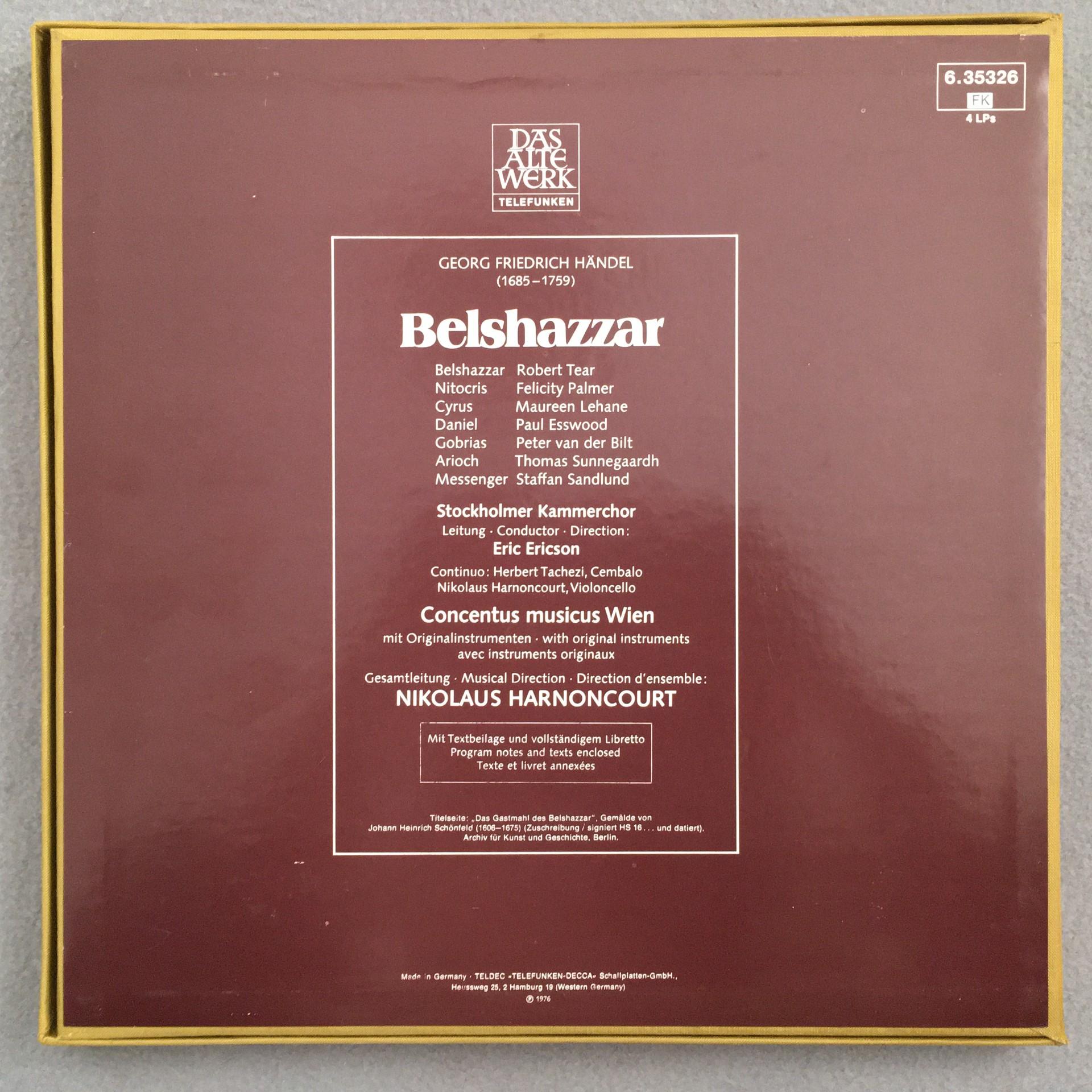 D752 Handel Belshazzar Tear Palmer Harnoncourt 4LP Telefunken 6.35326 FK Stereo
