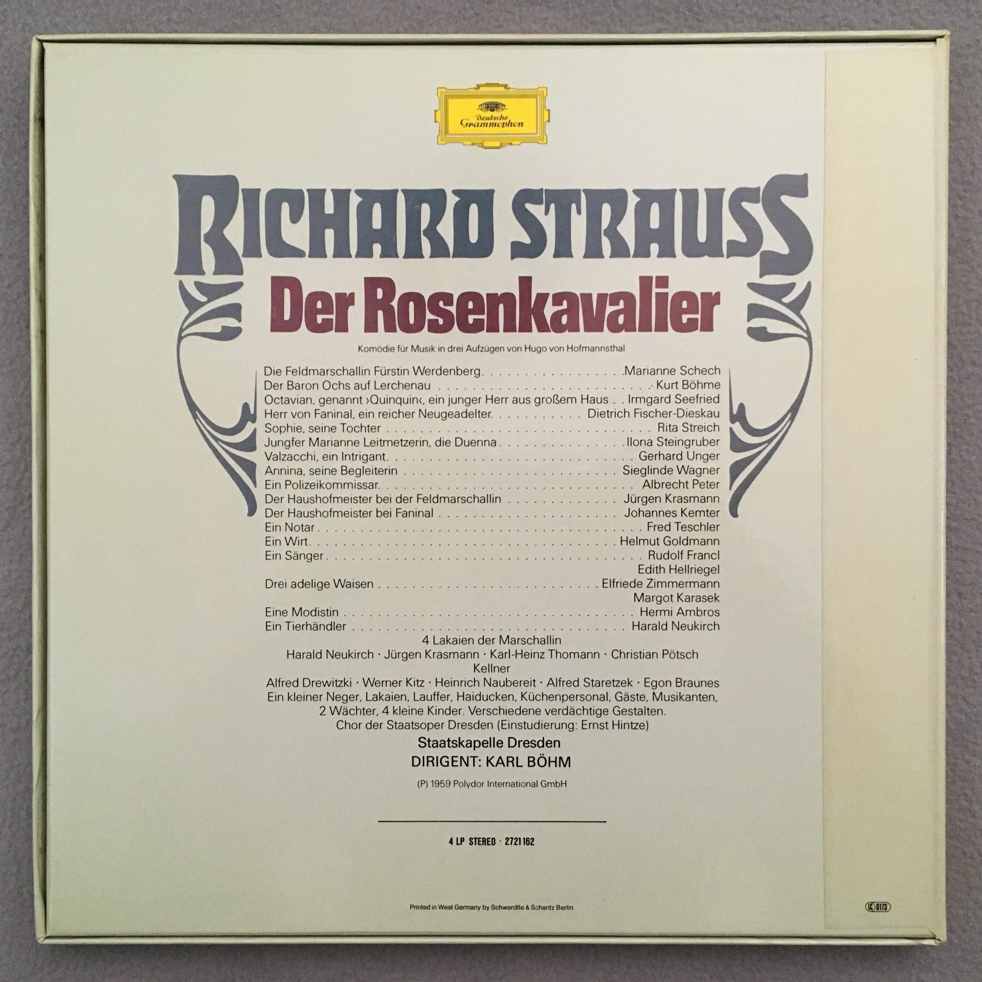 G592 R. Strauss Rosenkavalier Fischer-Dieskau Bohm 4LP DGG 2721 162 Stereo