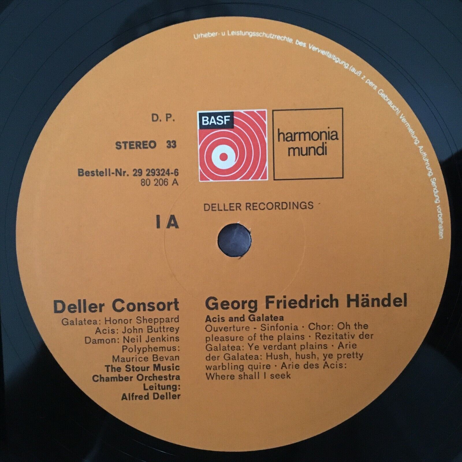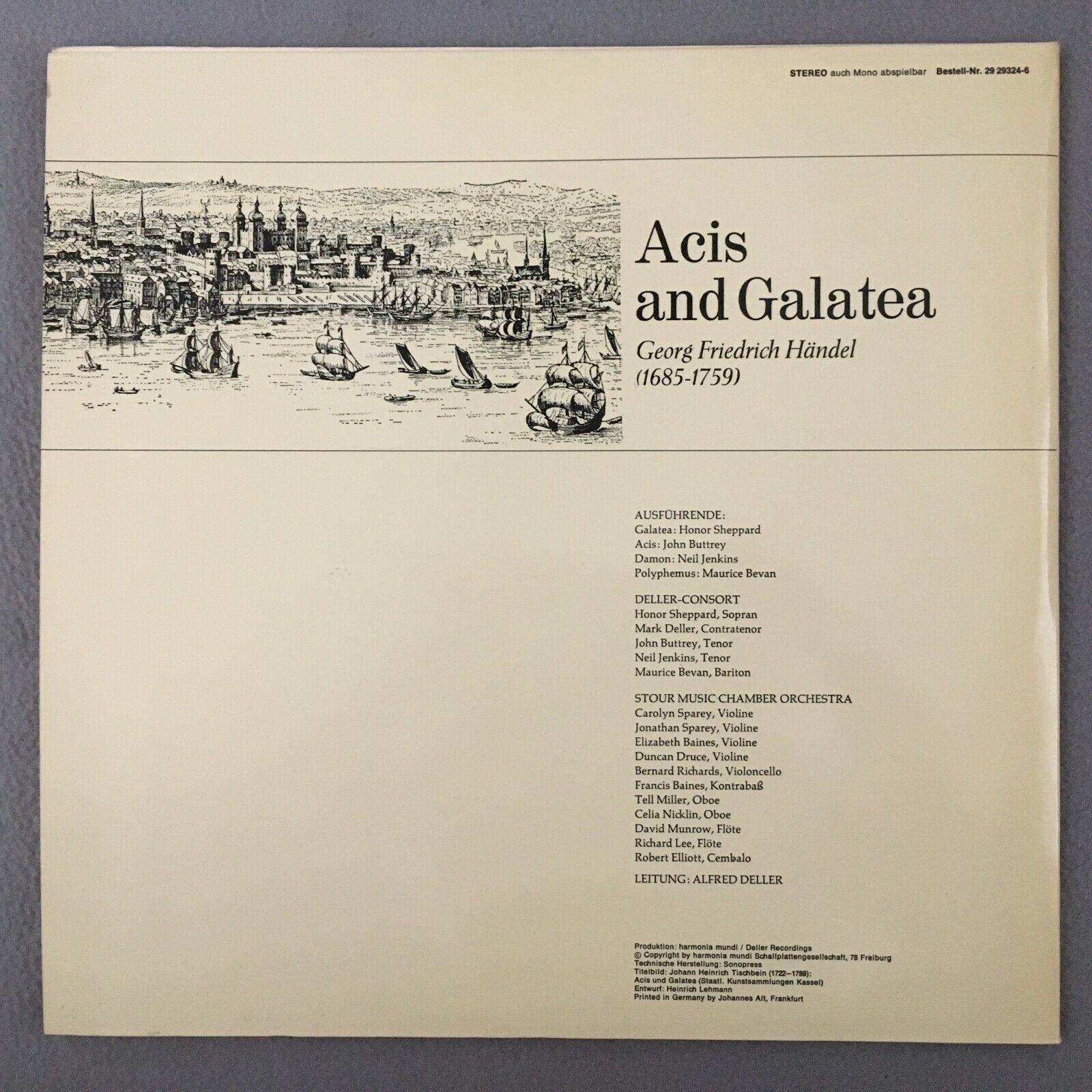 S526 Handel Acis & Galatea Deller Consort 2LP Harmonia Mundi 29 29324-6 Stereo