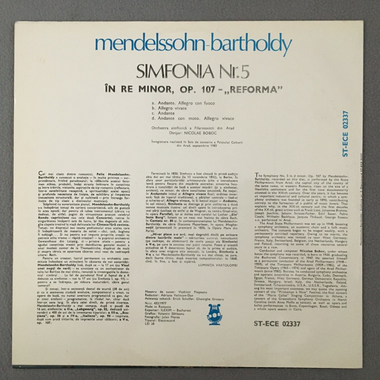 S525 Mendelssohn Symphony No.5 Boboc Electrecord ST-ECE 02337 Stereo