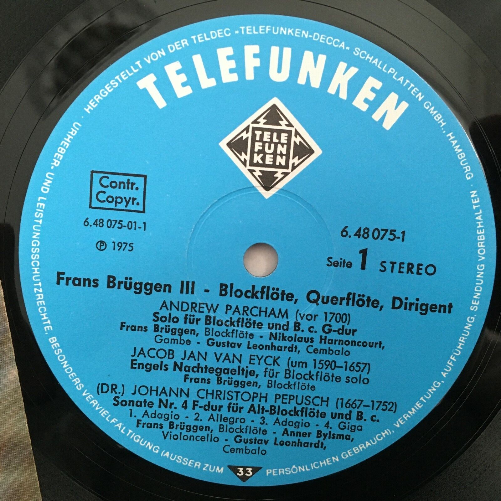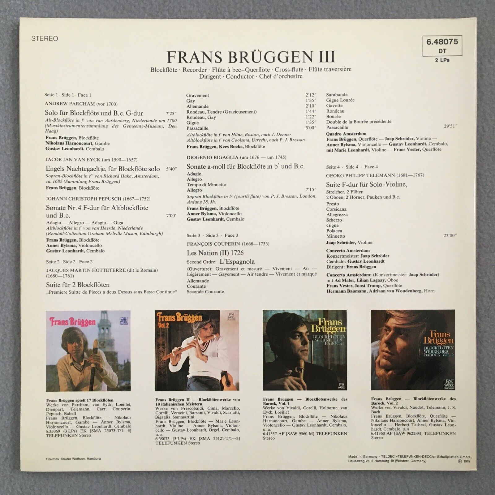 S373 Frans Brüggen 3 Bylsma Leonhardt Schröder 2LP Telefunken 6.48075 DT Stereo