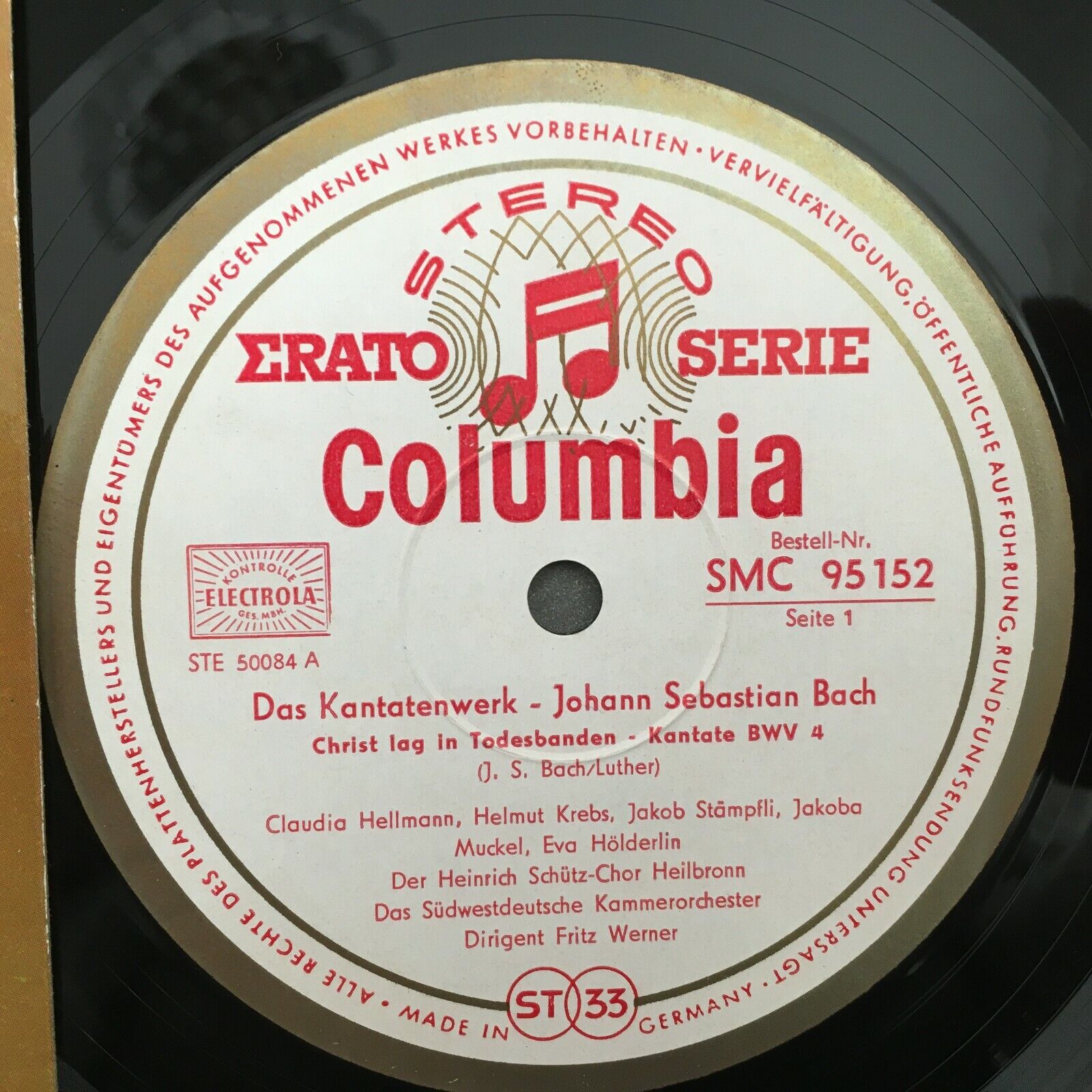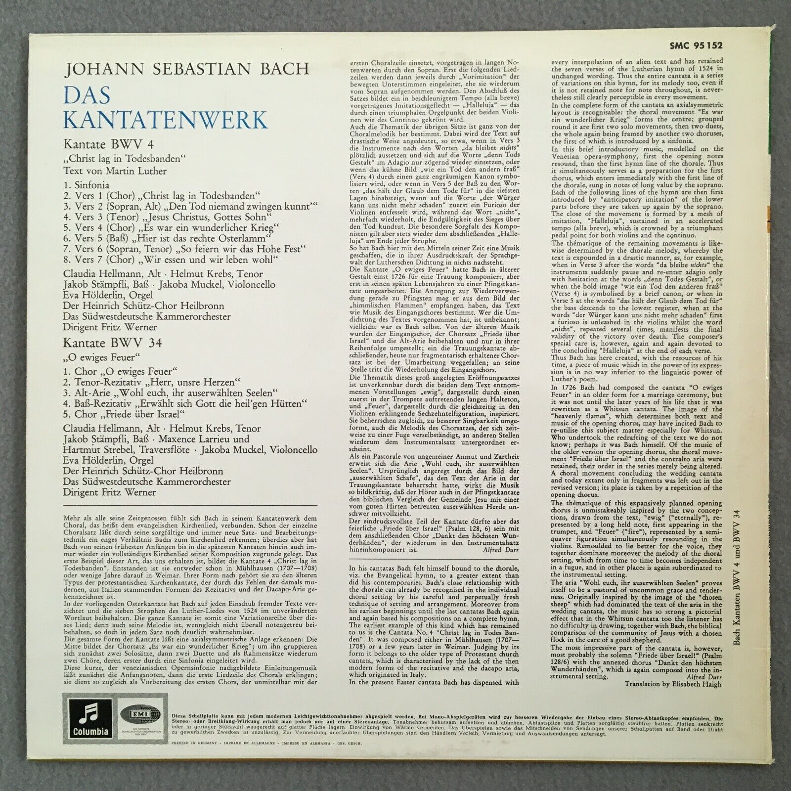 S376 Bach Cantatas Hellmann Krebs Werner Columbia w/g SMC 95 152 Stereo