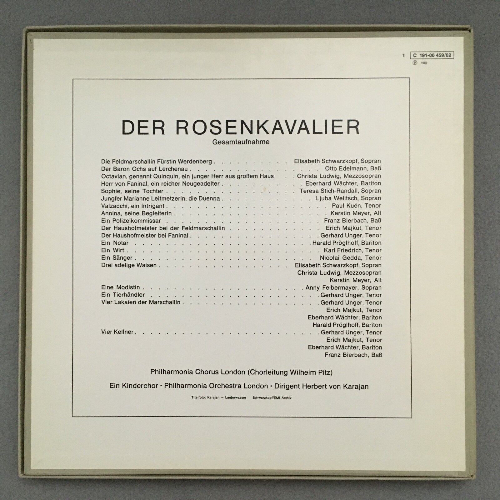 C194 Strauss Rosenkavalier Schwarzkopf Ludwig Karajan 4LP EMI 1C 191-00 459/62