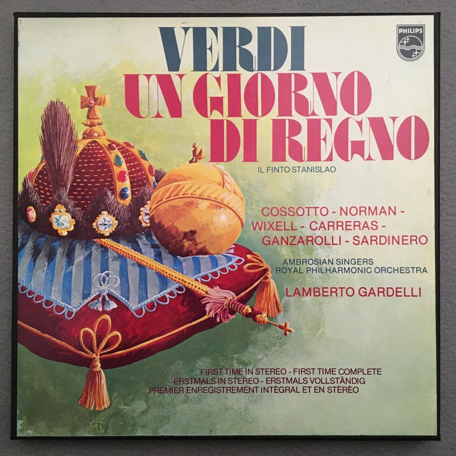 G423 Verdi Un Giorno di Regno Carreras Gardelli 3LP Philips 6703 055 Stereo