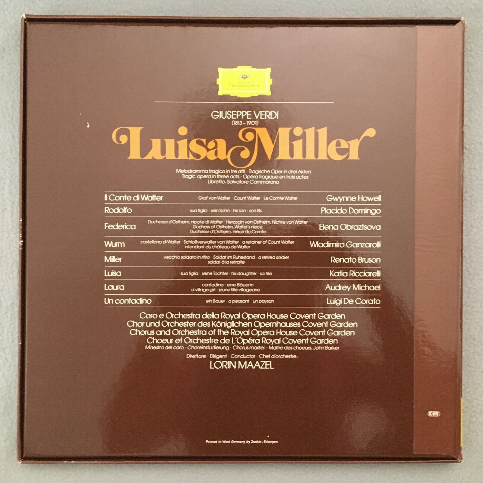 C208 Verdi Luisa Miller Ricciarelli Domingo Maazel 3LP DGG 2709 096 Stereo