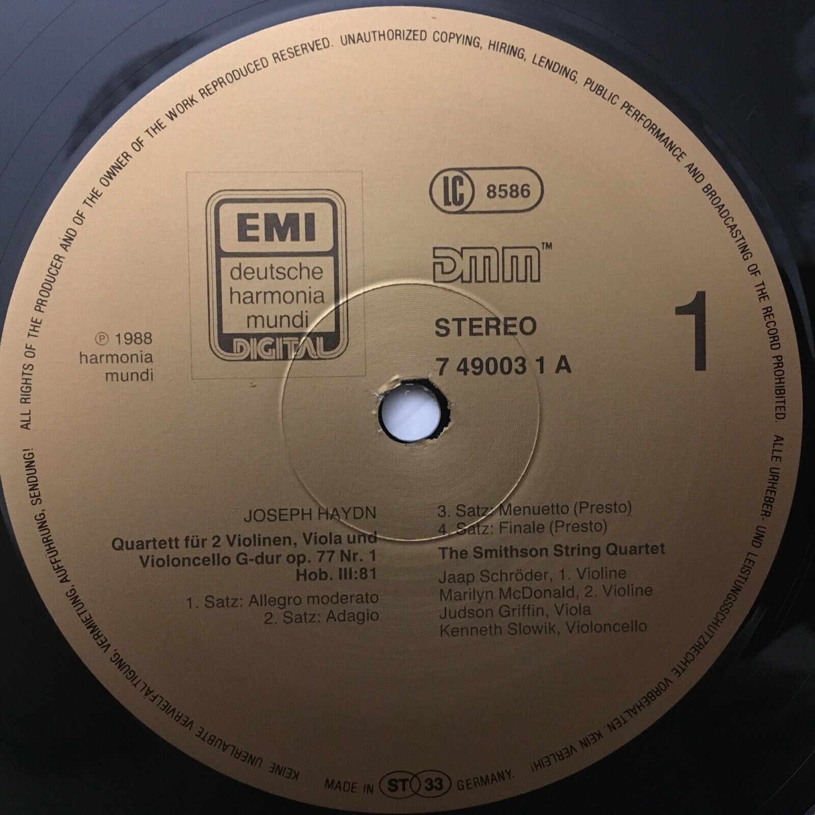 S207 Haydn String Quartets Smithson String Quartet EMI 067 7 49003 1 Digital St