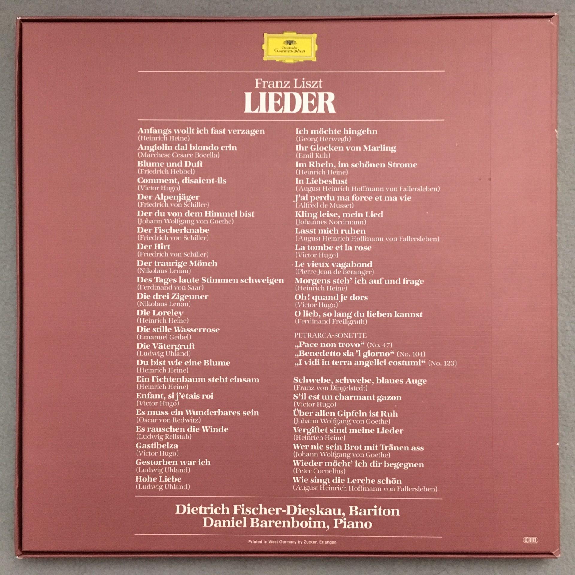 D758 Liszt Songs Fischer-Dieskau Barenboim 4LP DGG 2740 254 Stereo