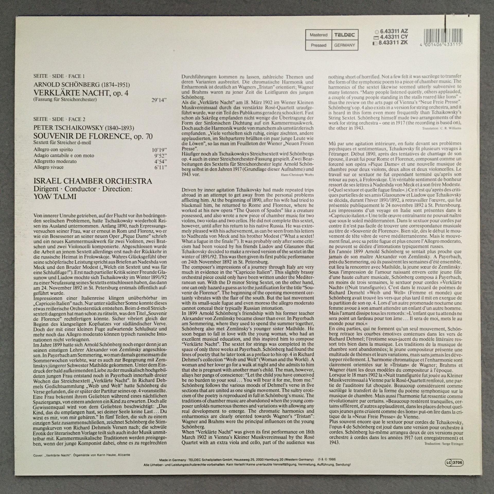 O591 Schönberg Verklärte Nacht Tchaikovsky Talmi Teldec 6.43311 AZ Dig Stereo