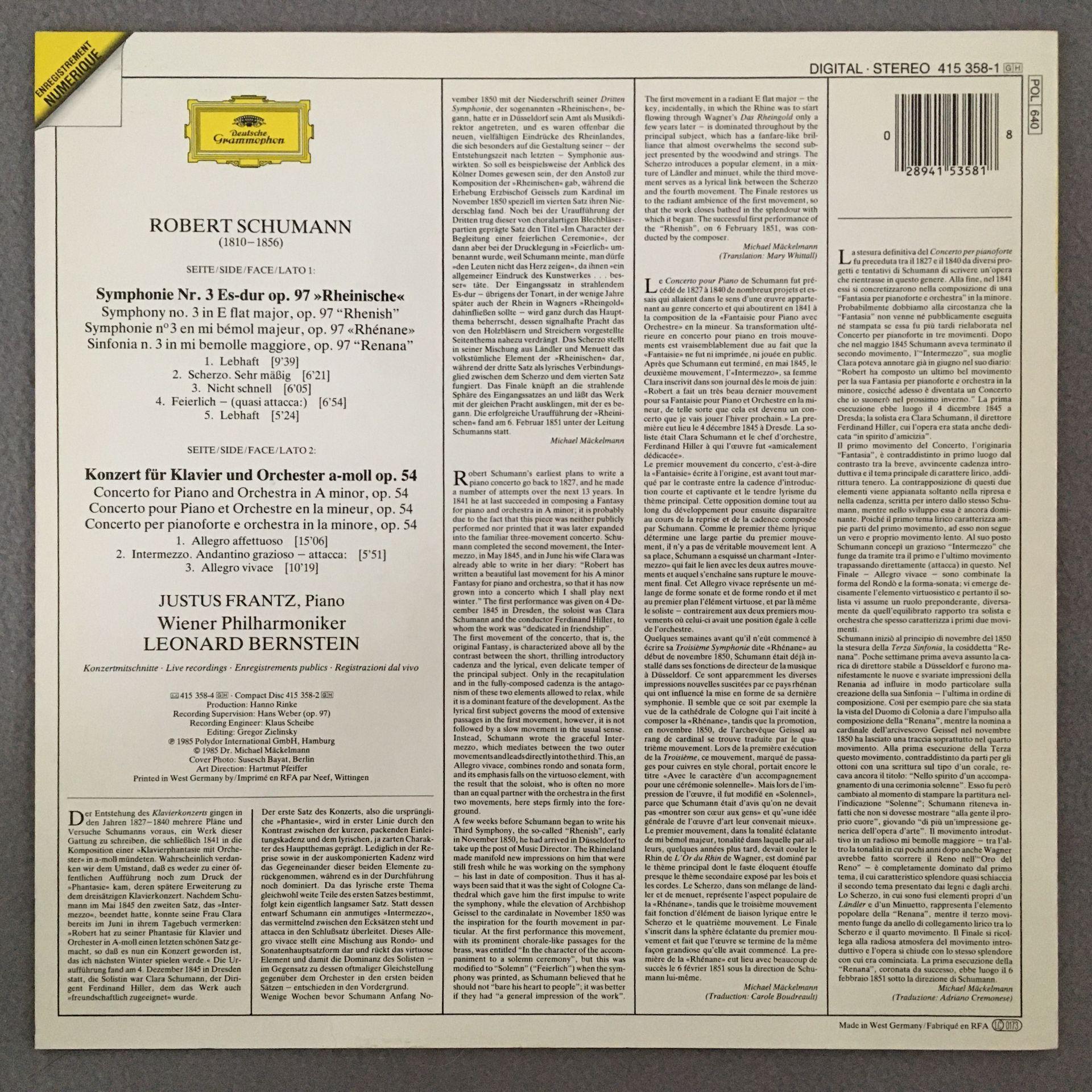 O612 Schumann Symphony Piano Concerto Bernstein VPO DGG 415 358-1 Digital St