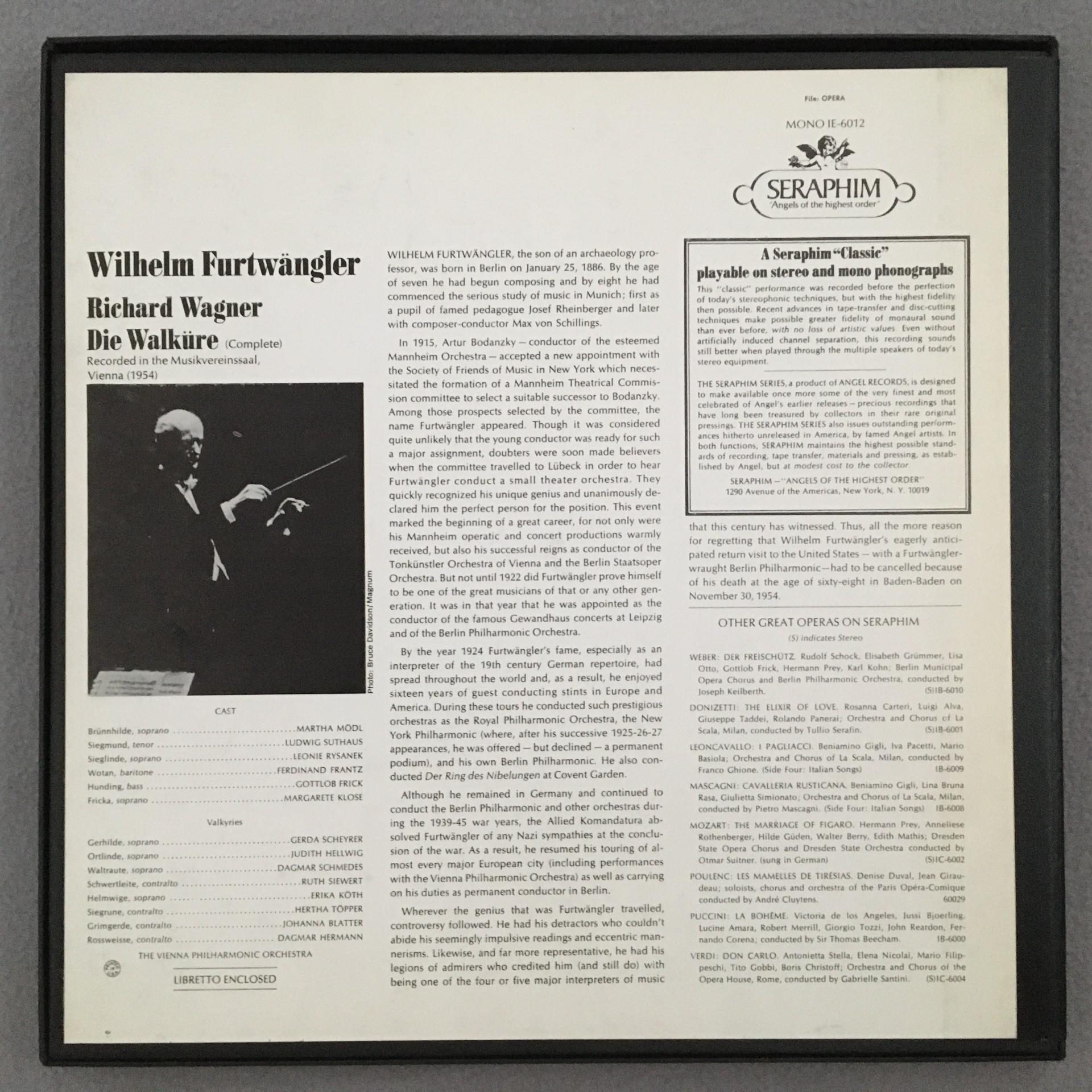 D772 Wagner Valkyrie Mödl Suthaus Furtwangler VPO 5LP Seraphim IE-6012