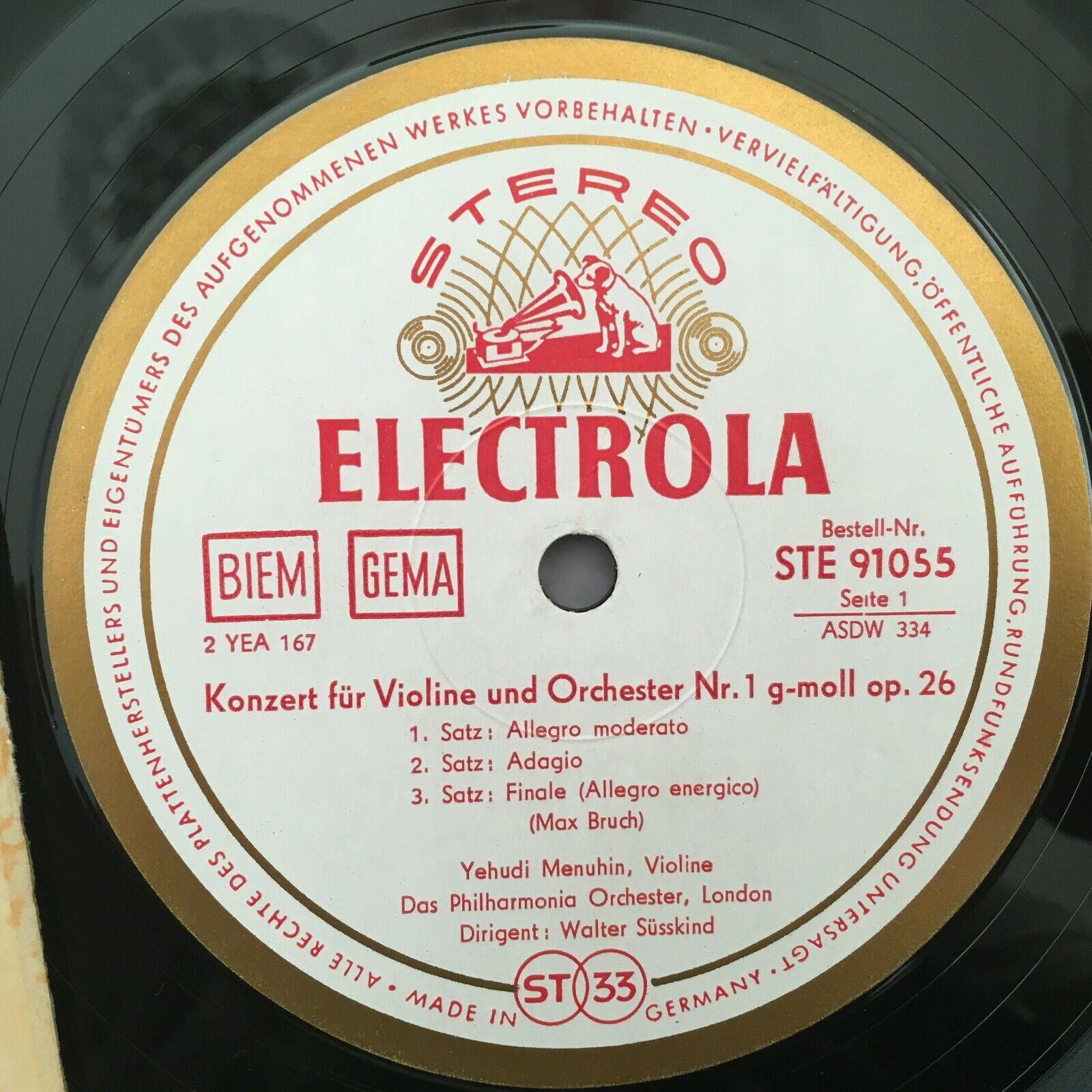 S080 Bruch Mendelssohn Violin Concertos Menuhin Kurtz Electrola w/g SME 91 055 S