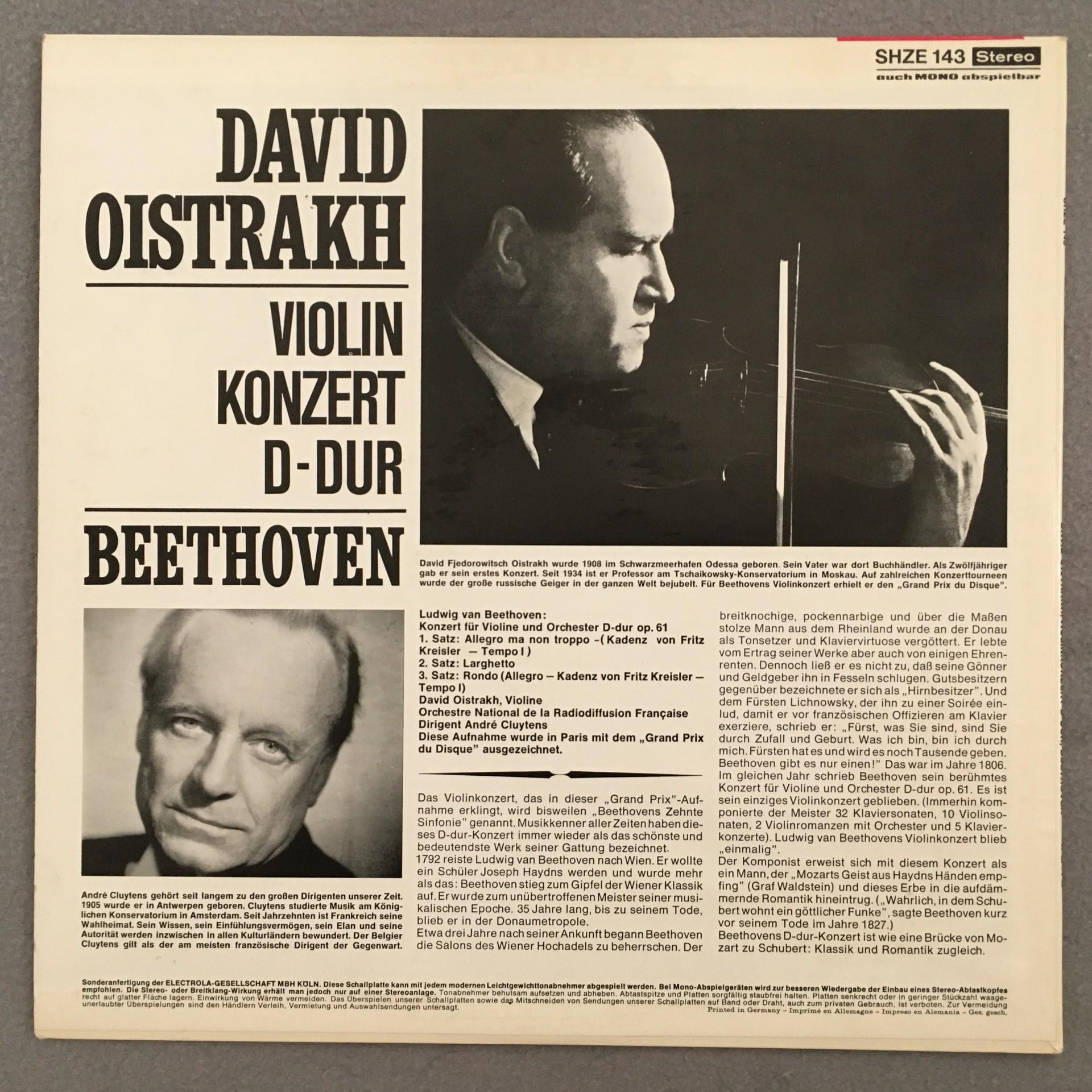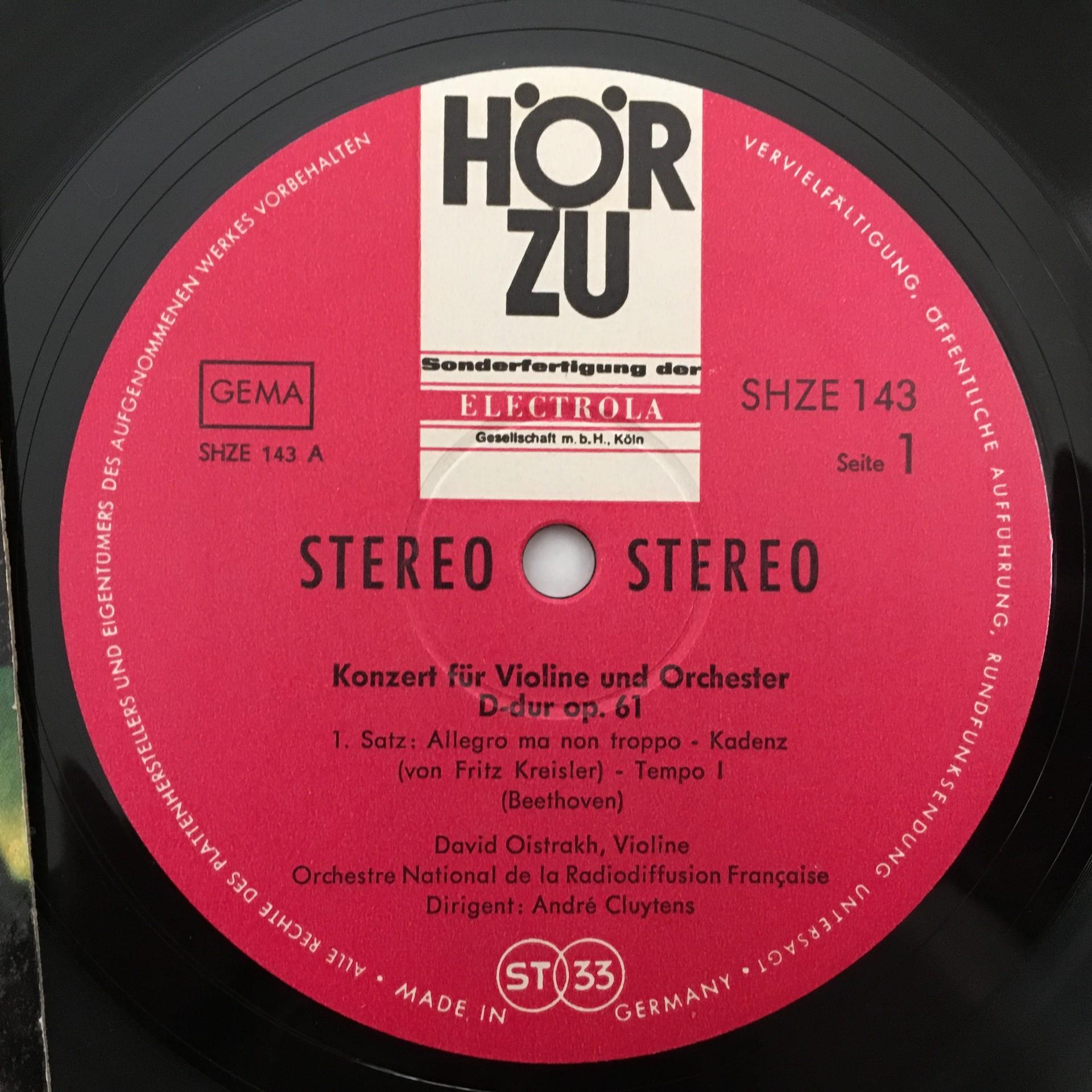 O626 Beethoven Violin Concerto Oistrakh Hörzu SHZE 143 Stereo