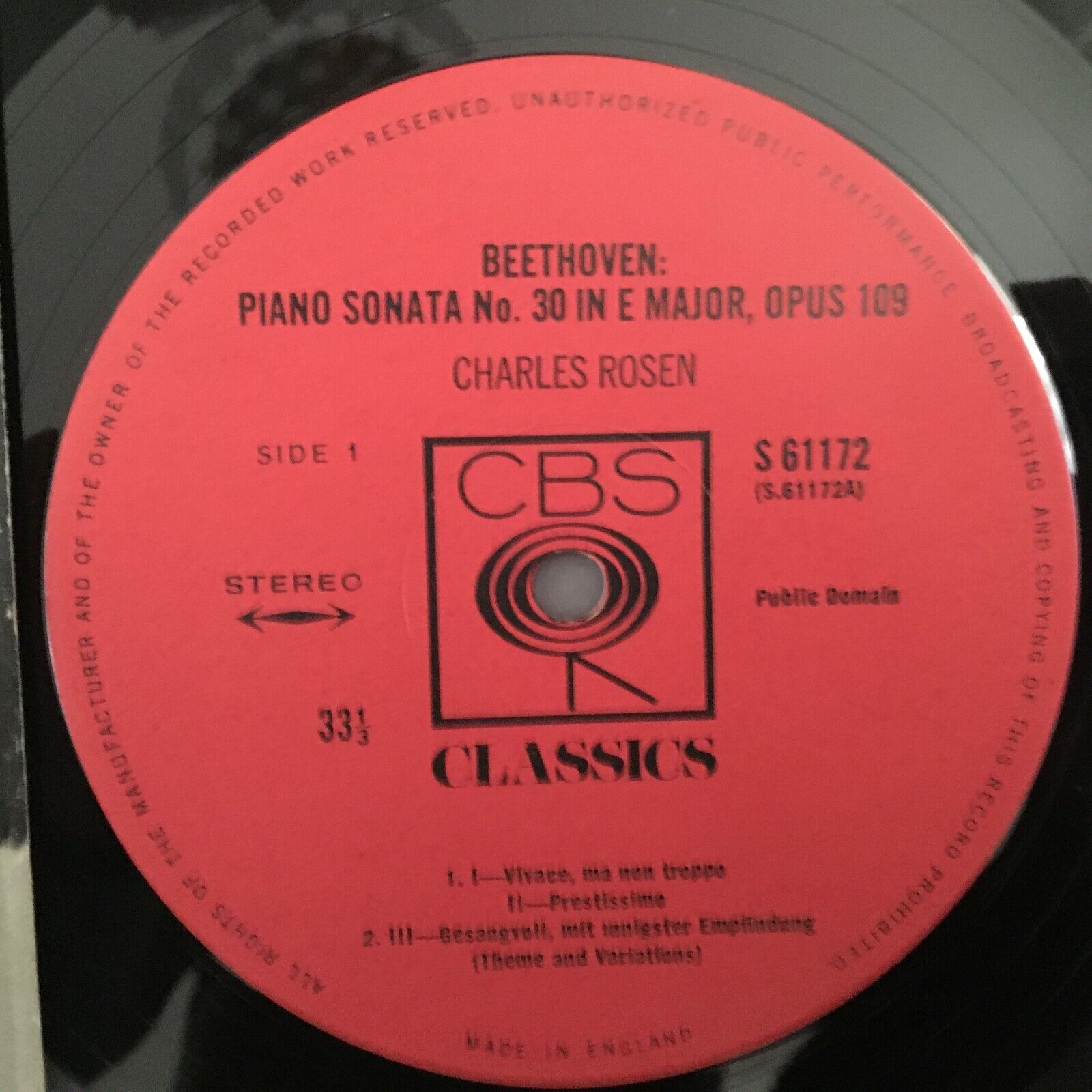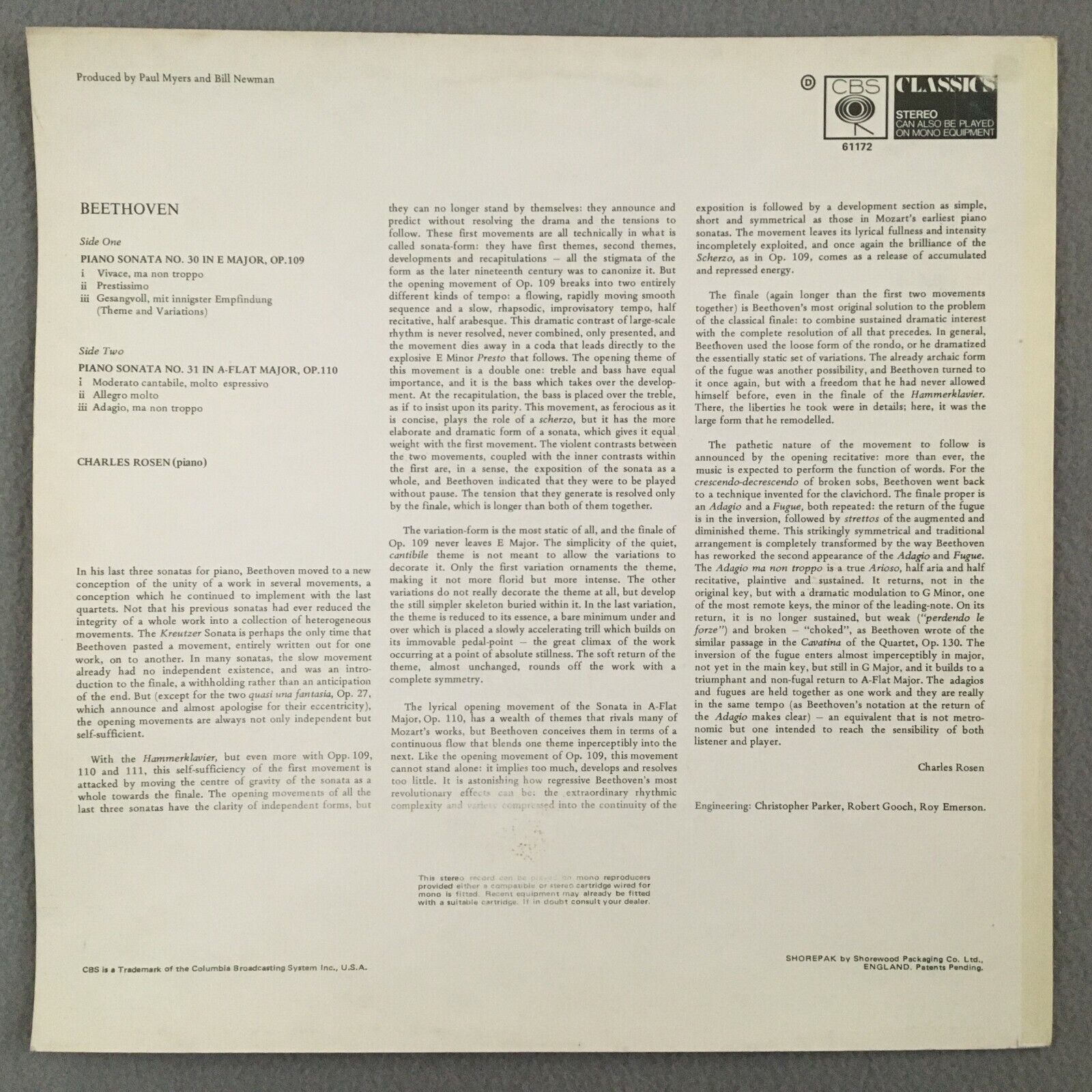 S255 Beethoven Sonatas No.30 & No.31 Rosen Piano CBS 61172 Stereo