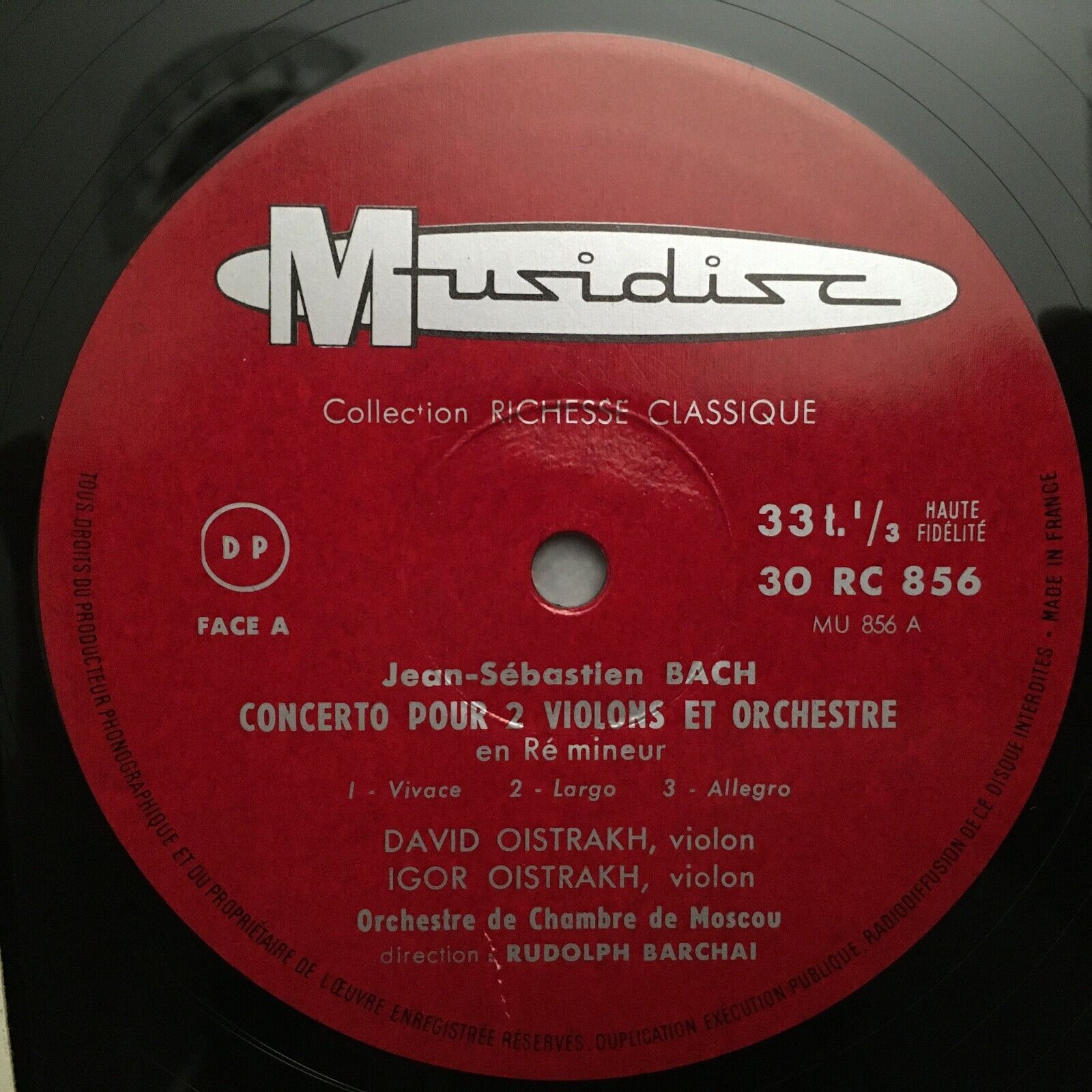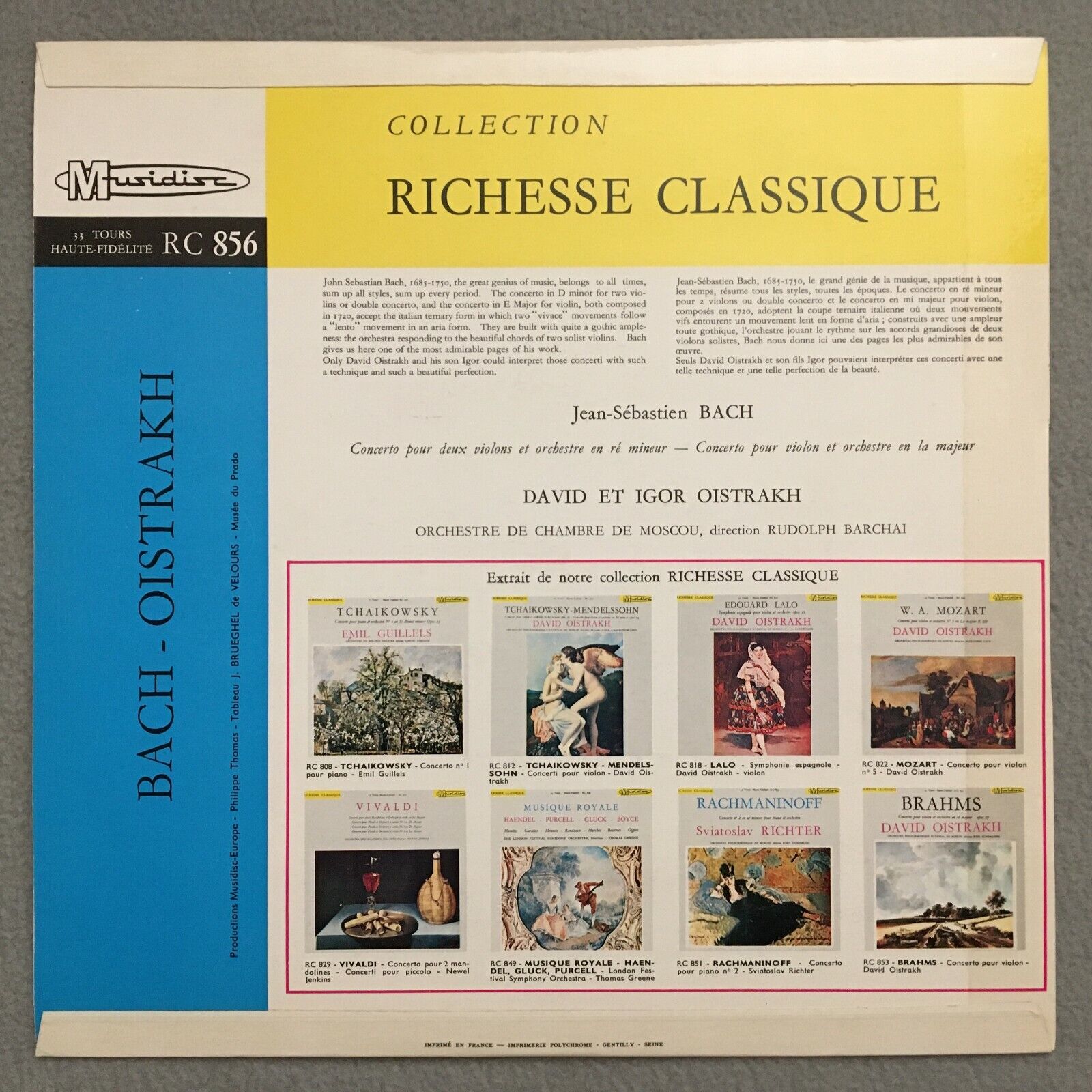 S117 Bach Violin Concerto D. & I. Oistrakh Barchai Musidisc RC 856