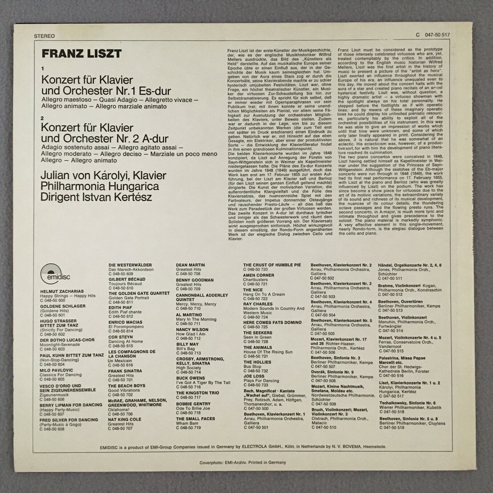 R916 Liszt Piano Concertos No.1 & 2 Karolyi Kertesz Emidisc C 047-50 517 Stereo