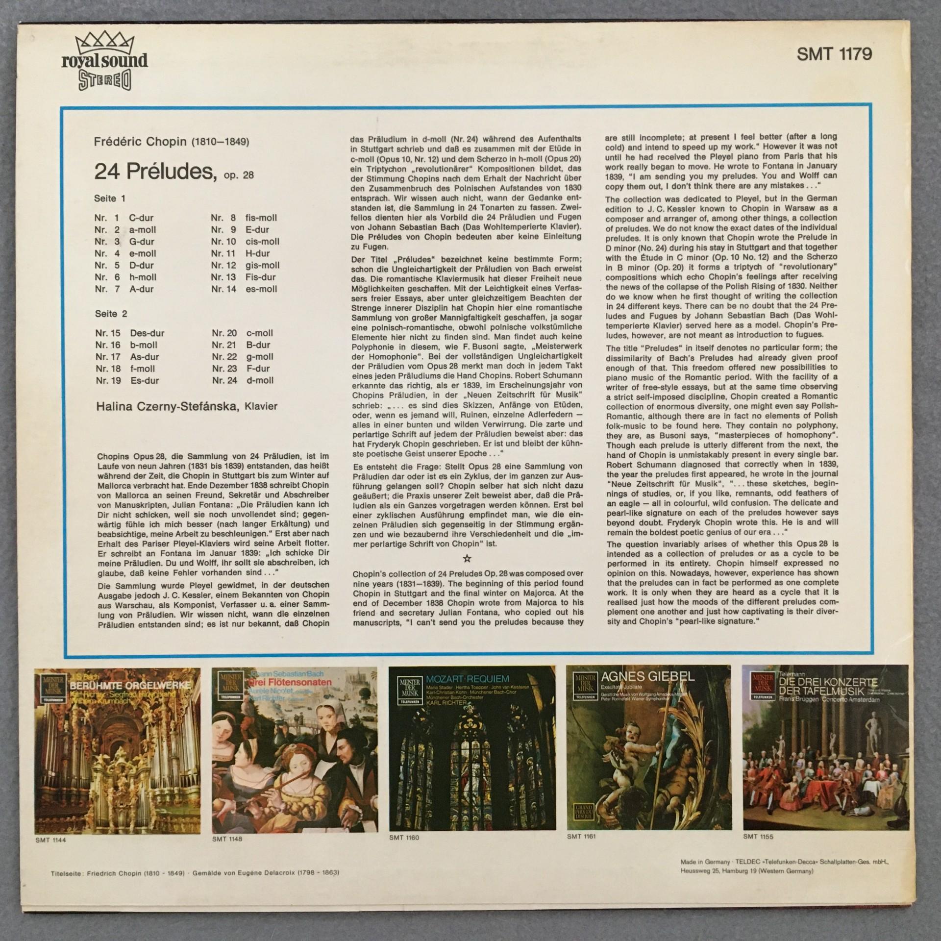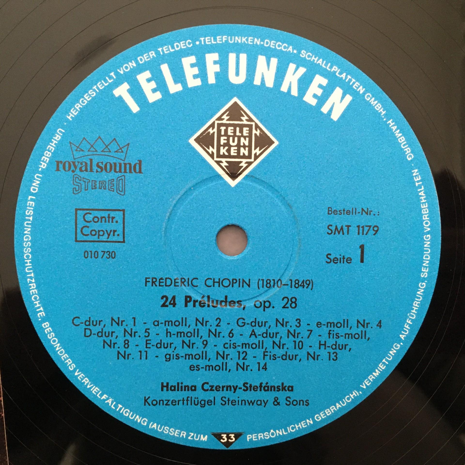 O654 Chopin 24 Preludes Op.28 Czerny- Stefanska Piano Telefunken SMT 1179 Stereo