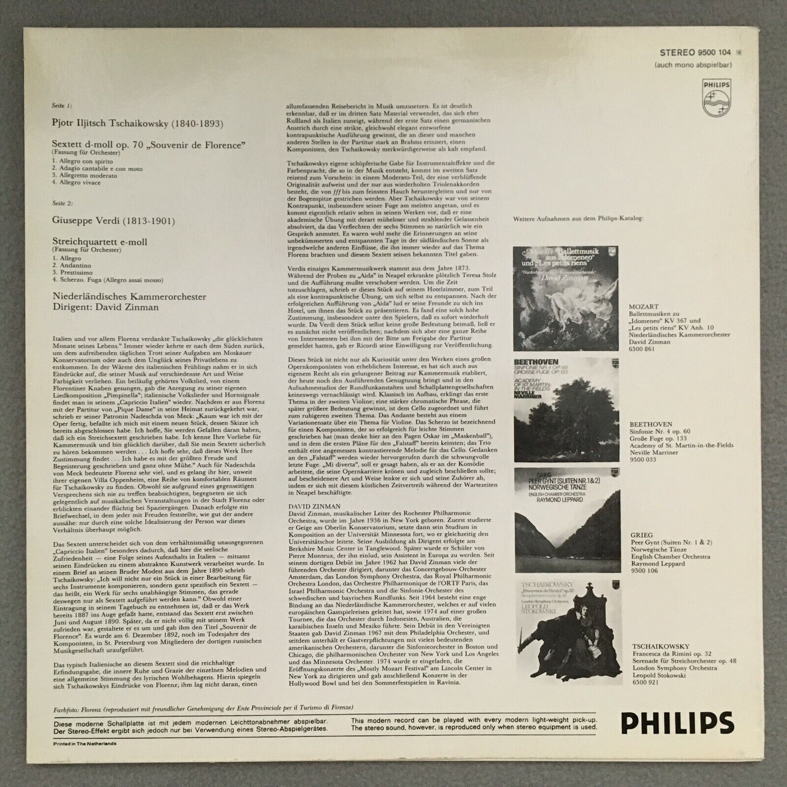 R934 Tchaikovsky Sextet Verdi String Quartet Zinman Philips 9500 104 Stereo